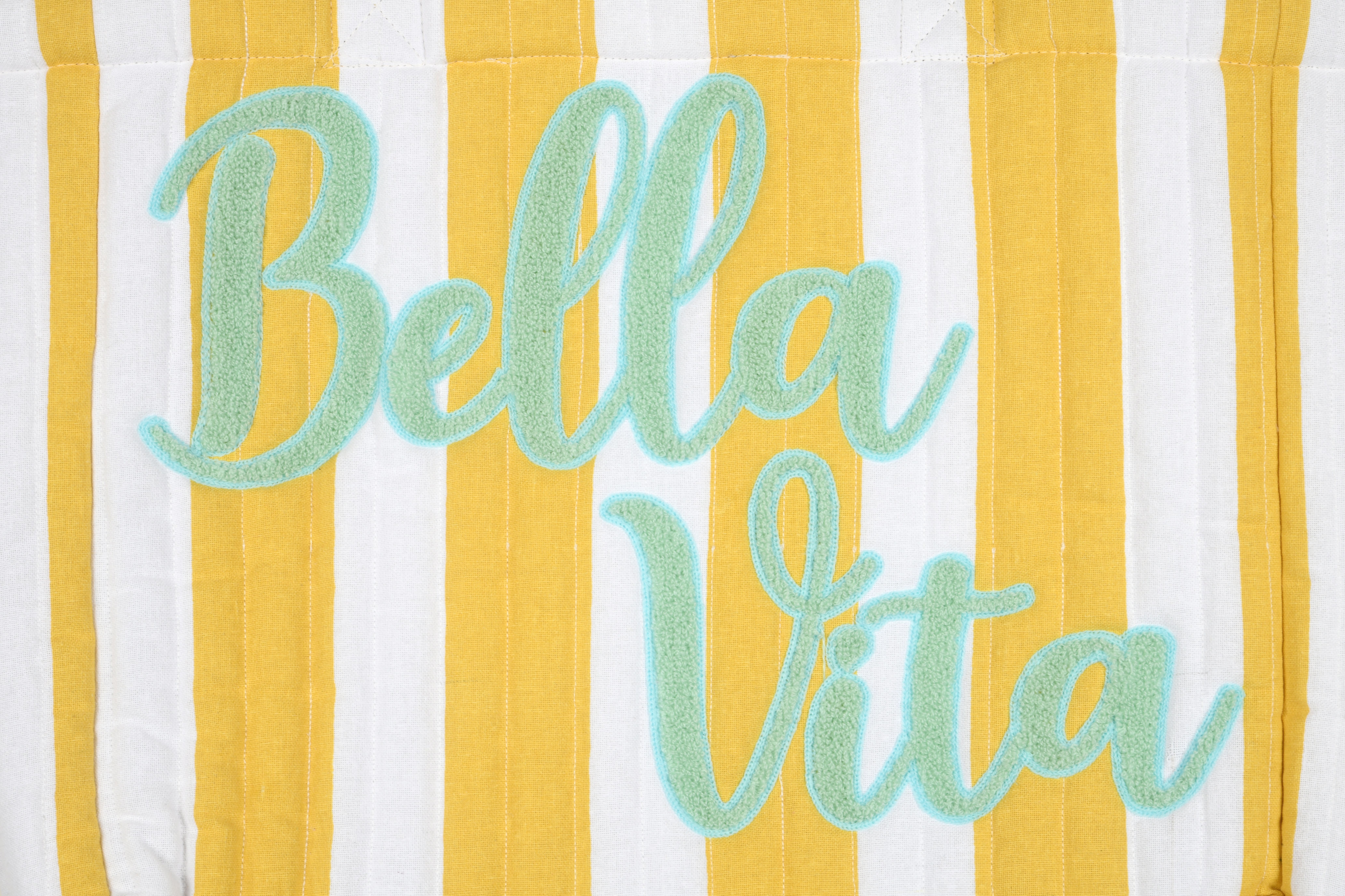 mit gesticktem Schriftzug Bella Vita in türkis