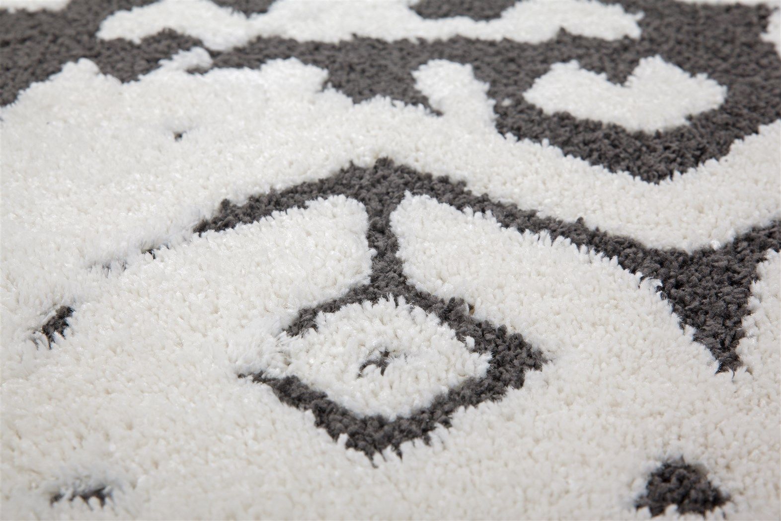 Bringen Sie mit diesem Hochflorteppich frischen Wind in Ihr Zuhause. Das moderne schwarze Ethno-Muster verziert den hellen Teppich ideal und wird durch die dekorativen und weichen Fransen an den Teppichenden noch unterstrichen. Die schlichten Farben in aufregendem Design werten nicht nur moderne Einrichtungen auf, sondern auch klassische oder rustikale Wohnstile. Statten Sie Ihre Wohnräume mit Ihrem neuen Hochflorteppich aus und schaffen Sie eine gemütliche Atmosphäre, egal ob in Wohnzimmer, Schlafzimmer oder Eingangsbereich. Mit modernen Teppichen von Kayoom holen Sie sich Blickfänge nach Hause. Damit für jede Wohnsituation ein passendes Exemplar dabei ist, ist der Teppich in verschiedenen Größen erhältlich.