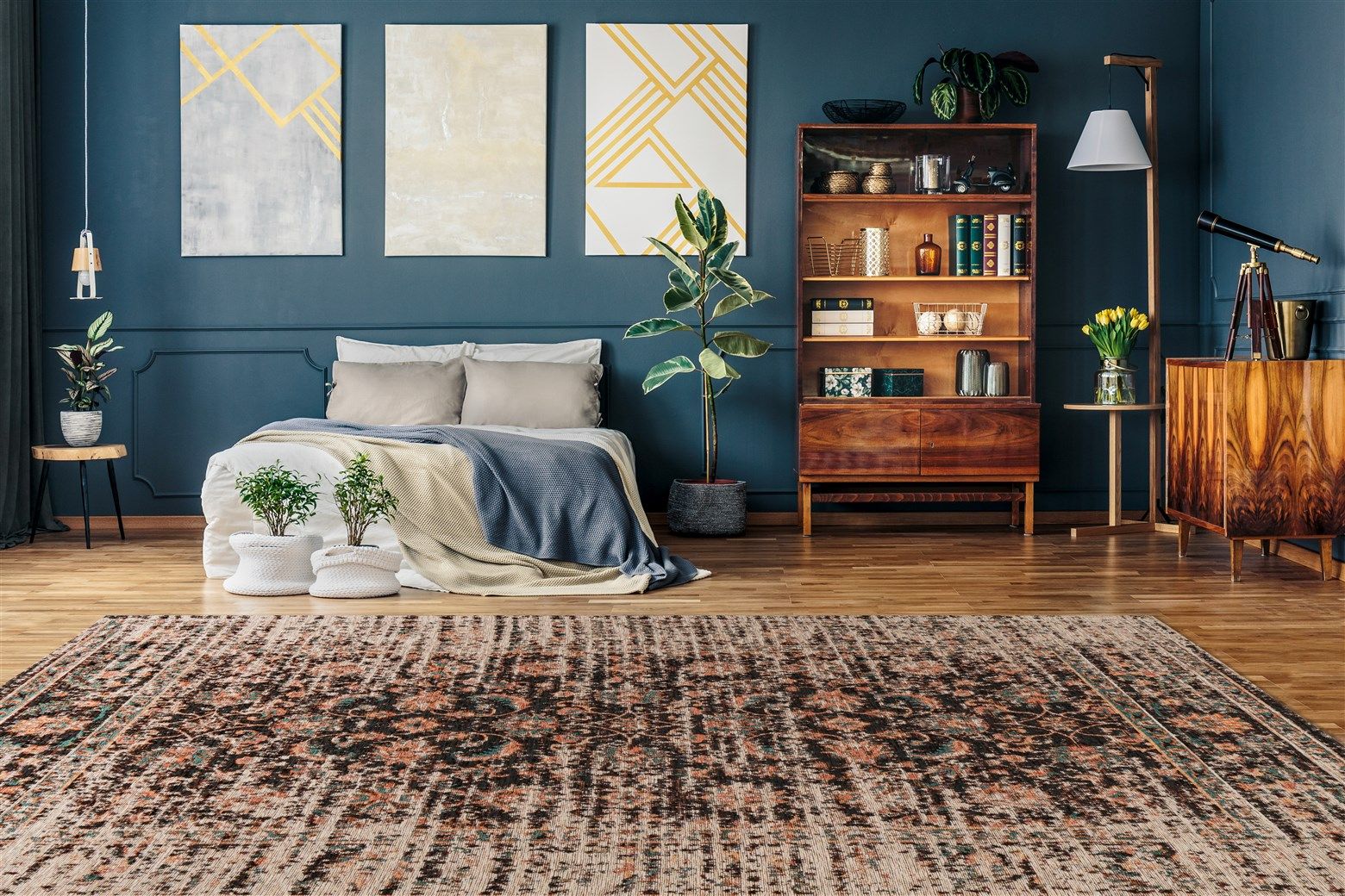 Neben der Kombination mit antiken Möbeln kann der Teppich auch in modernen Ess- oder Wohnzimmern in Szene gesetzt werden. Ob einzeln in großen Räumen und Fluren ausgelegt oder unter Möbeln, wie Esstischen und Sofas, ist er in jedem Raum gern gesehen. Nicht nur seine stilvolle Farbgebung und Farbverläufe zeichnen den Vintage Teppich aus, er ist auch besonders pflegeleicht. Durch die hochwertigen Materialien bewährt sich der Teppich in Langlebigkeit und Leichtgewichtigkeit.