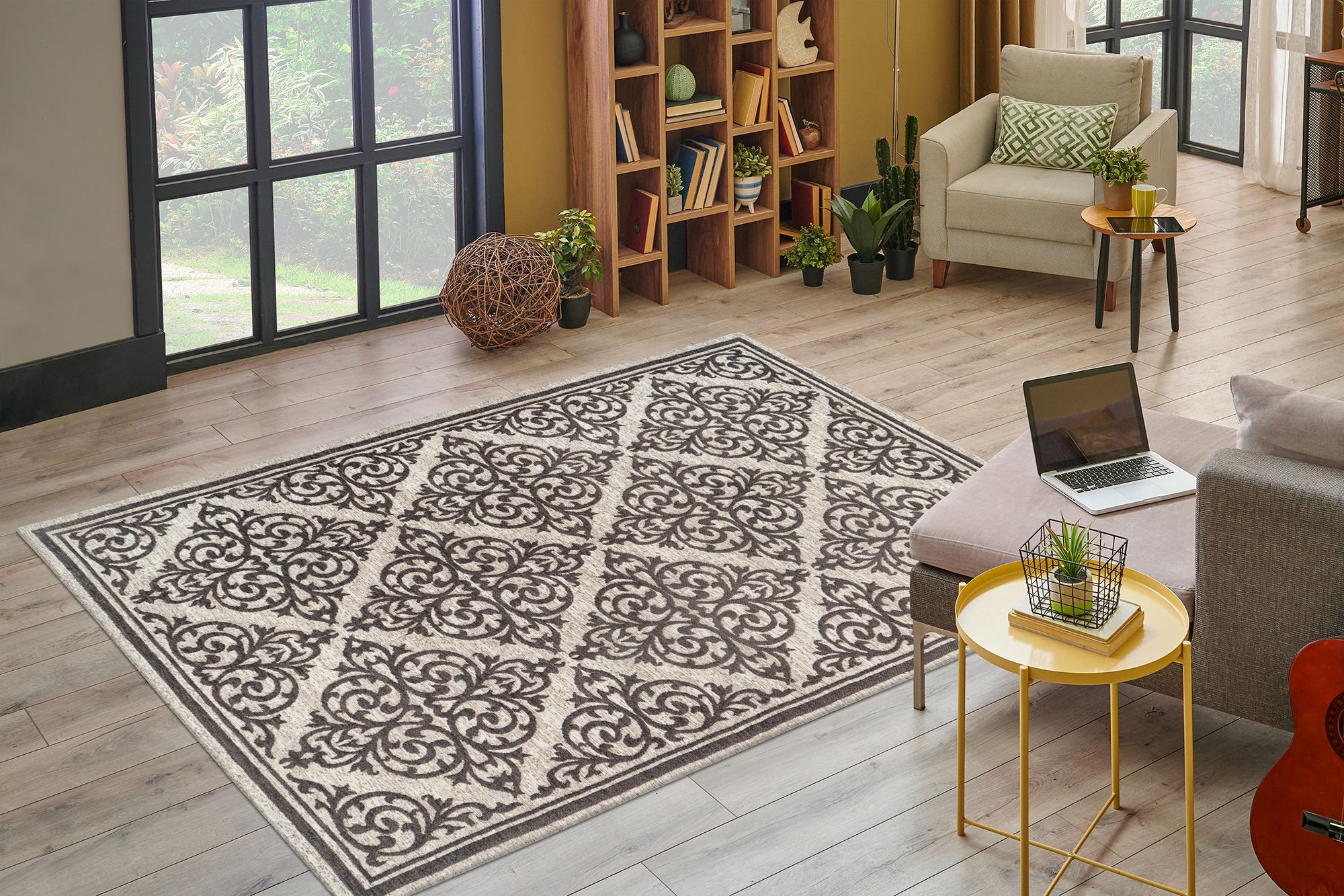 Der orientalische anmutende Teppich aus 100% Polyester überzeugt vor allem durch sein spezifisches Design. Die orientalischen Motive passen sich durch die neutralen Farben fast jedem Einrichtungsstil an und lassen jeden Raum in neuem Glanz erstrahlen. Der pflegeleichte Teppich ist in drei unterschiedlichen Größen und zwei Farbkombinationen erhältlich. Dabei stehen Ihnen jedoch eine Vielzahl unterschiedlicher Motive zur Auswahl.
