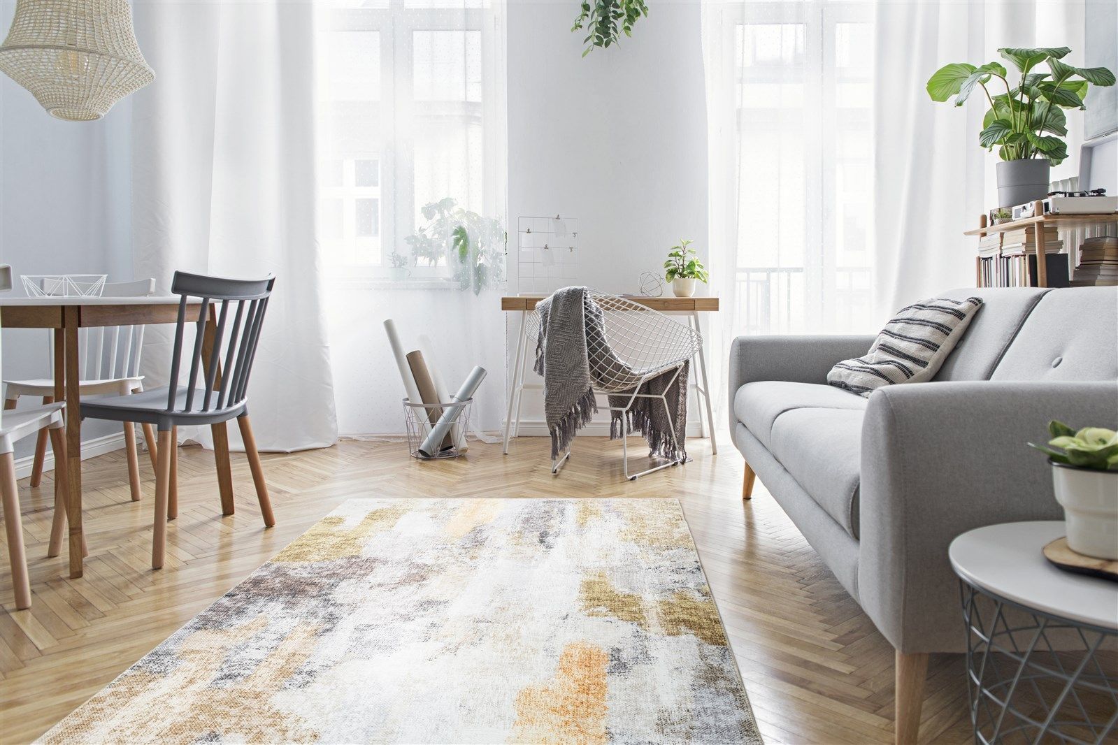Dieser Flachflorteppich ist ein Blickfang in jedem Raum. Stiltypische Verwaschungen und eine harmonische Gestaltung aufeinander abgestimmter Farben machen den Teppich zu einem traumhaften Bodenbelag. In modernen, schlichten Einrichtungen macht das Modell besonders viel her. Doch auch in Einrichtungen im klassischen Stil ist der Flachflorteppich eine bereichernde Ergänzung. Den Vintage-Charakter können Sie durch die Kombination mit weiteren Details im Vintage-Stil noch verstärken. Wohnaccessoires, Dekoelemente oder auch Möbel gibt es in verschiedenen Ausführungen mit Vintage- oder Retro-Optik, sodass für jede Einrichtung etwas Passendes dabei ist.