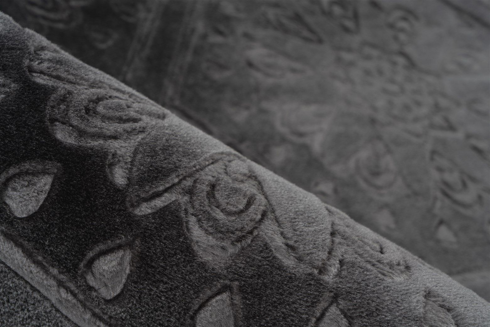 Mit diesem Teppichmodell holen Sie sich ein ganz besonderes Highlight nach Hause. Der einfarbige Kuschelflor ist mit einem Prägedruck versehen, der für eine zweifarbige Wirkung sorgt und gleichzeitig einen 3D-Effekt mit sich bringt. Durch die niedrigeren geprägten Fasern entstehen Höhen und Tiefen in der Oberfläche, die dem Teppich seine besondere Optik verleihen. Rundherum ist der Teppich mit einem Saumband versehen, was ein Ausfransen verhindert und gleichzeitig das Gesamtbild abrundet.
