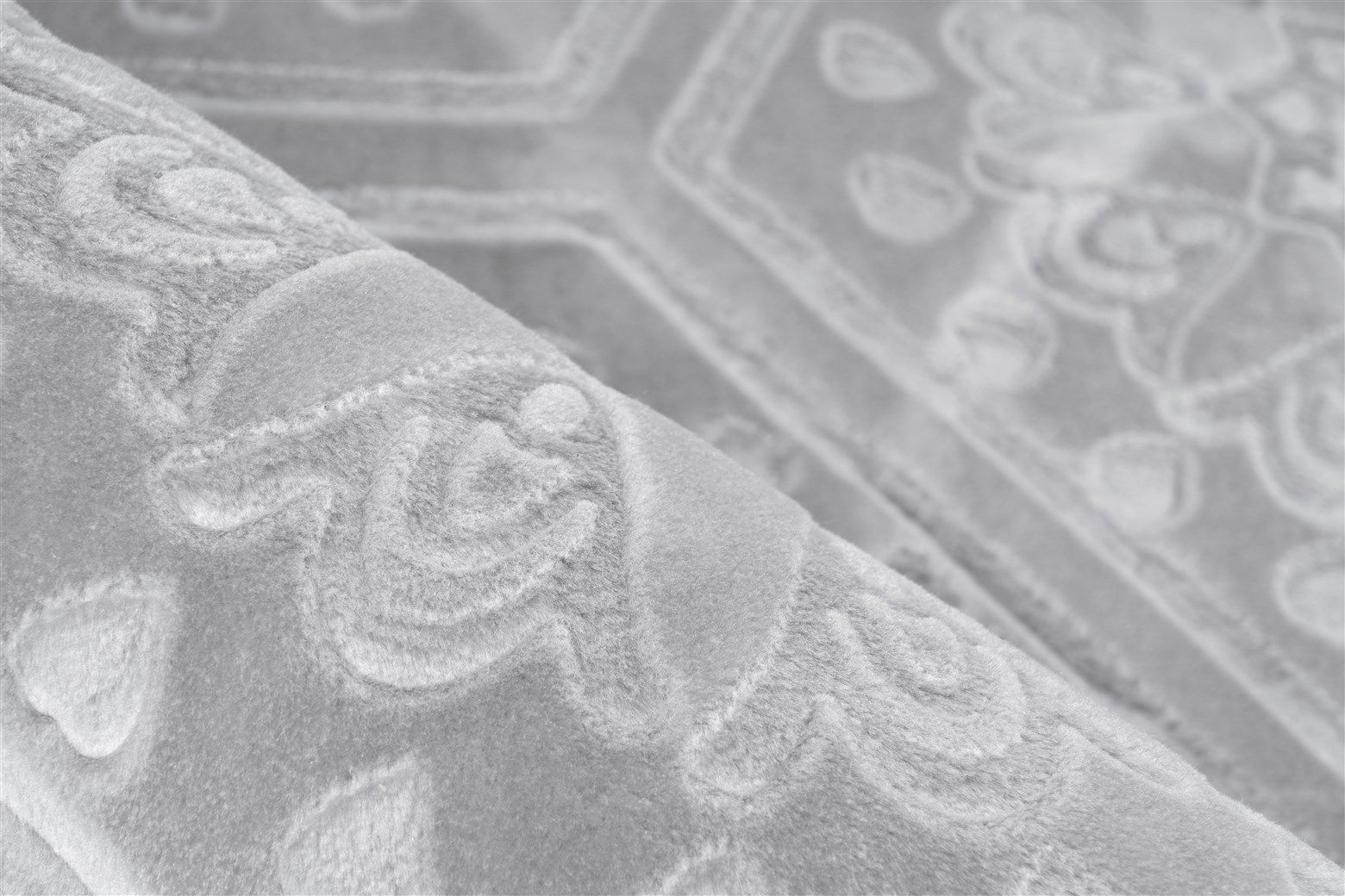 Mit diesem Teppichmodell holen Sie sich ein ganz besonderes Highlight nach Hause. Der einfarbige Kuschelflor ist mit einem Prägedruck versehen, der für eine zweifarbige Wirkung sorgt und gleichzeitig einen 3D-Effekt mit sich bringt. Durch die niedrigeren geprägten Fasern entstehen Höhen und Tiefen in der Oberfläche, die dem Teppich seine besondere Optik verleihen. Rundherum ist der Teppich mit einem Saumband versehen, was ein Ausfransen verhindert und gleichzeitig das Gesamtbild abrundet.