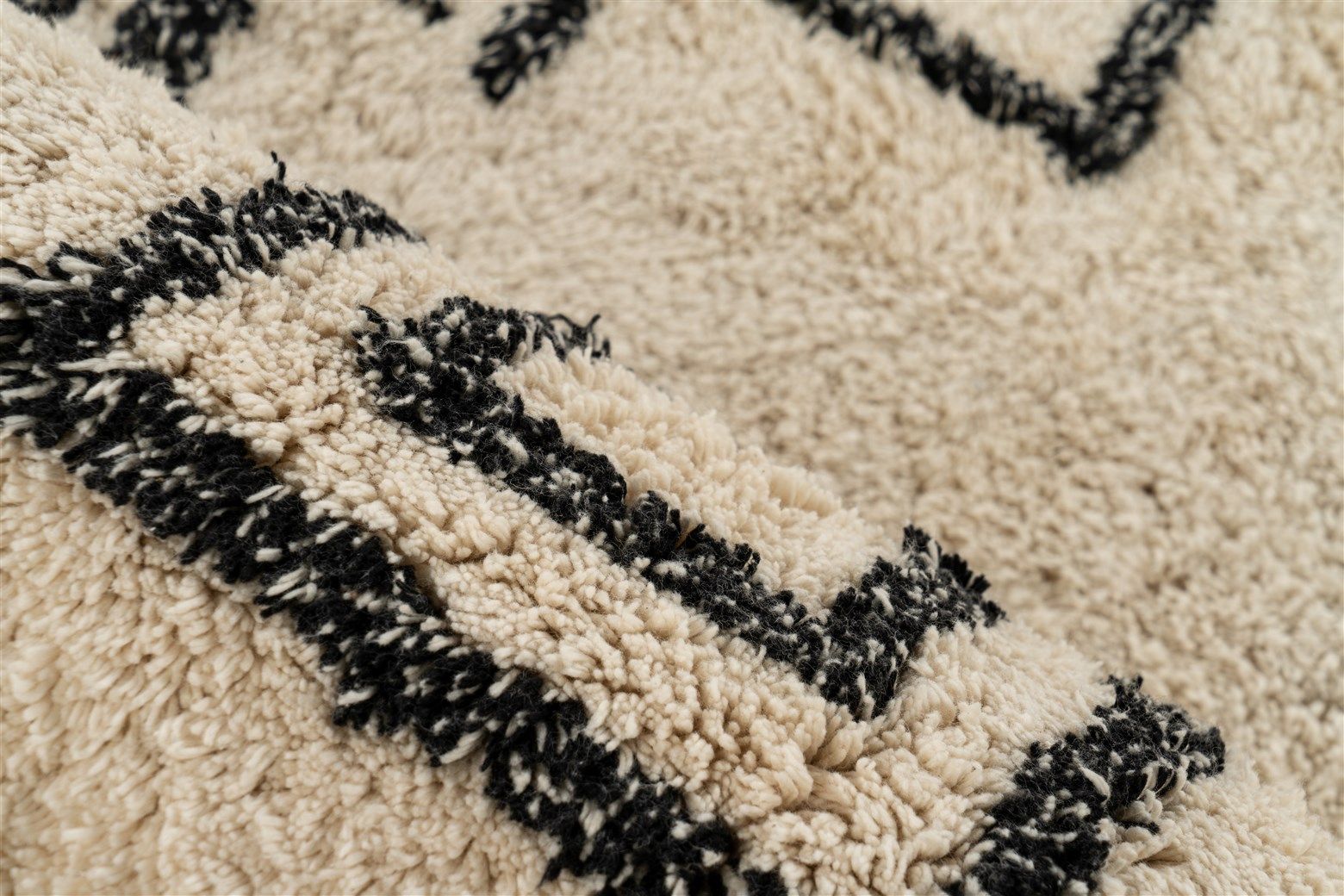 Dieser Flachflorteppich ist ein Highlight in Ihrem Raum. Das Design ist schlicht, nicht zu aufdringlich und zeitlos. Die leichten hellen Farben verleihen Ihrem Zuhause einen sauberen Look und sorgen gleichzeitig für ein warmes Gefühl. Der stilvolle Teppich lässt sich von Ihnen hervorragend mit Kissen oder Decken kombinieren. Dabei ist der Teppich pflegeleicht und strapazierfähig. Er ist das ideale Accessoire für Familien mit Kindern oder Haustieren. Der Teppich kann auch in Räumen mit Fußbodenheizung platziert werden. Durch die gute Verarbeitung und dadurch, dass er aus 100 % Baumwolle besteht, können eventuelle Flecken mühelos entfernt werden. Durch einen unterschiedlich einfallenden Lichteinfall kann der Teppich in seiner tatsächlichen Farbgebung abweichen. Die Streichrichtung des weichen Flors variiert und kann die Farbgebung ändern.