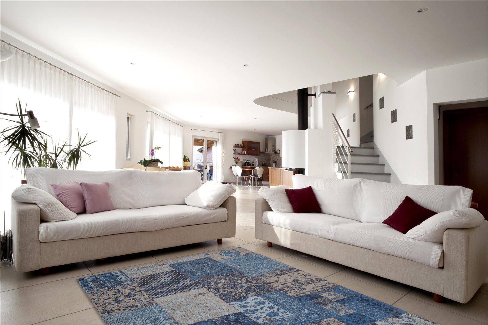 Den perfekten Laufkomfort bietet dieser Vintage-Teppich mit seinem trendigen Patchwork-Look. Die leicht verwaschenen Elemente in wunderbar kontrastierenden Farben in verschiedenen Blautönen sind das Markenzeichen dieses Vintage-Teppichs. Das hochwertige Material und die ausgezeichnete Verarbeitung sorgen für das unnachahmliche Wohngefühl, das der Flachwebteppich vermittelt. Schön hierzu lassen sich auch die anderen Teppiche und Kissen der Reihe kombinieren. Das Material zeichnet sich durch hohe Strapazierfähigkeit, leichte Pflege und langanhaltende Farbintensität aus. Alle Ansprüche des modernen Wohnens sind in dem attraktiven Teppich mit Patchwork-Optik vereint. Einmal positioniert liegt er perfekt und sicher und vermittelt ein Maximum an Komfort.