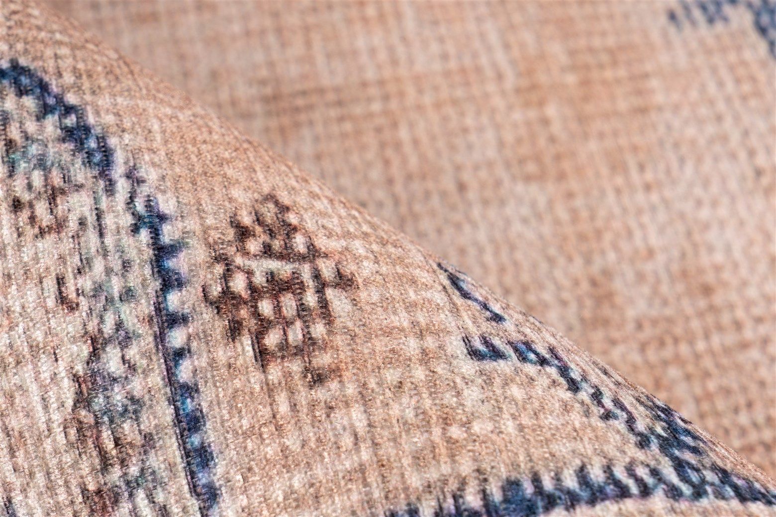 Die tolle Optik dieses Teppichs entsteht nicht nur durch das angesagte Vintage-Design, sondern auch durch die harmonische Farbkombination. Liebhaber des Vintage-Stils werden diesen Teppich lieben. Er wird sofort zum Hingucker in Ihren Wohnräumen und kann selbst im Kinderzimmer zum neuen Spieluntergrund werden. Egal, in welchem Raum Sie den Kurzflorteppich auslegen, er wird ihn im Nu aufwerten. Vorteilhaft ist dabei das pflegeleichte Material mit Baumwoll-Rücken, denn so ist der Teppich pflegeleicht und lässt sich einfach reinigen.