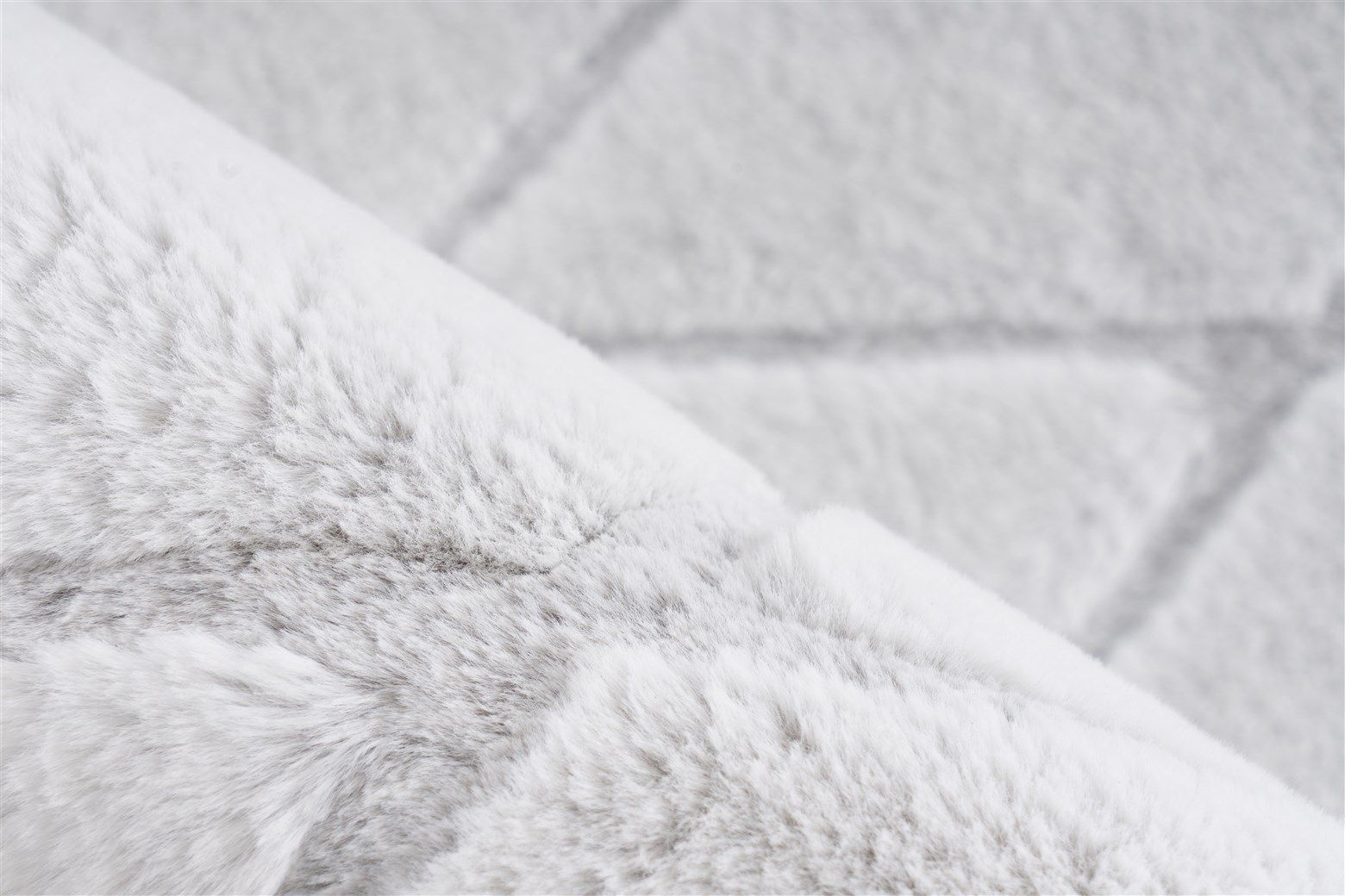 Der besondere Look dieses Hochflorteppichs zeichnet sich durch das attraktive geprägte Muster aus, das für einen attraktiven 3D-Effekt sorgt. Durch die geometrischen Formen des Musters erhält der Teppich zudem einen stilvollen Retro-Charakter. Der ansonsten schlichte und einfarbige Flor kann sich in jedem Wohnraum sehen lassen und lässt sich dank der schlichten Eleganz mit jeder Einrichtung kombinieren. Die kuschelige Oberfläche sorgt für eine gemütliche Atmosphäre im Raum. In Räumen mit Fußbodenheizung kann der Teppich ebenso problemlos ausgelegt werden.