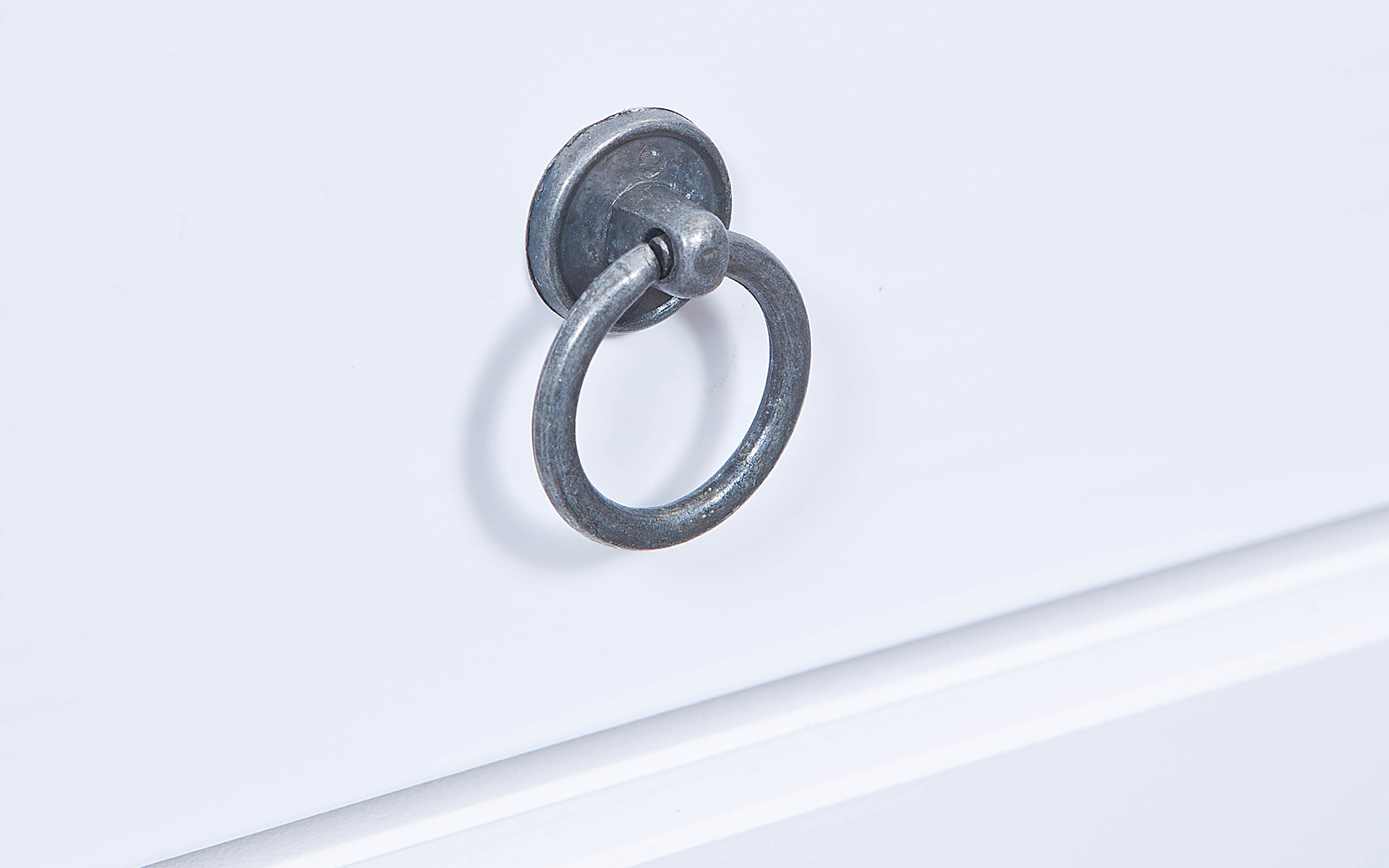 ein markanter Sockel und prägnante Ringösen an den Schubladen verleihen der TV-Kommode ihre klassische Eleganz