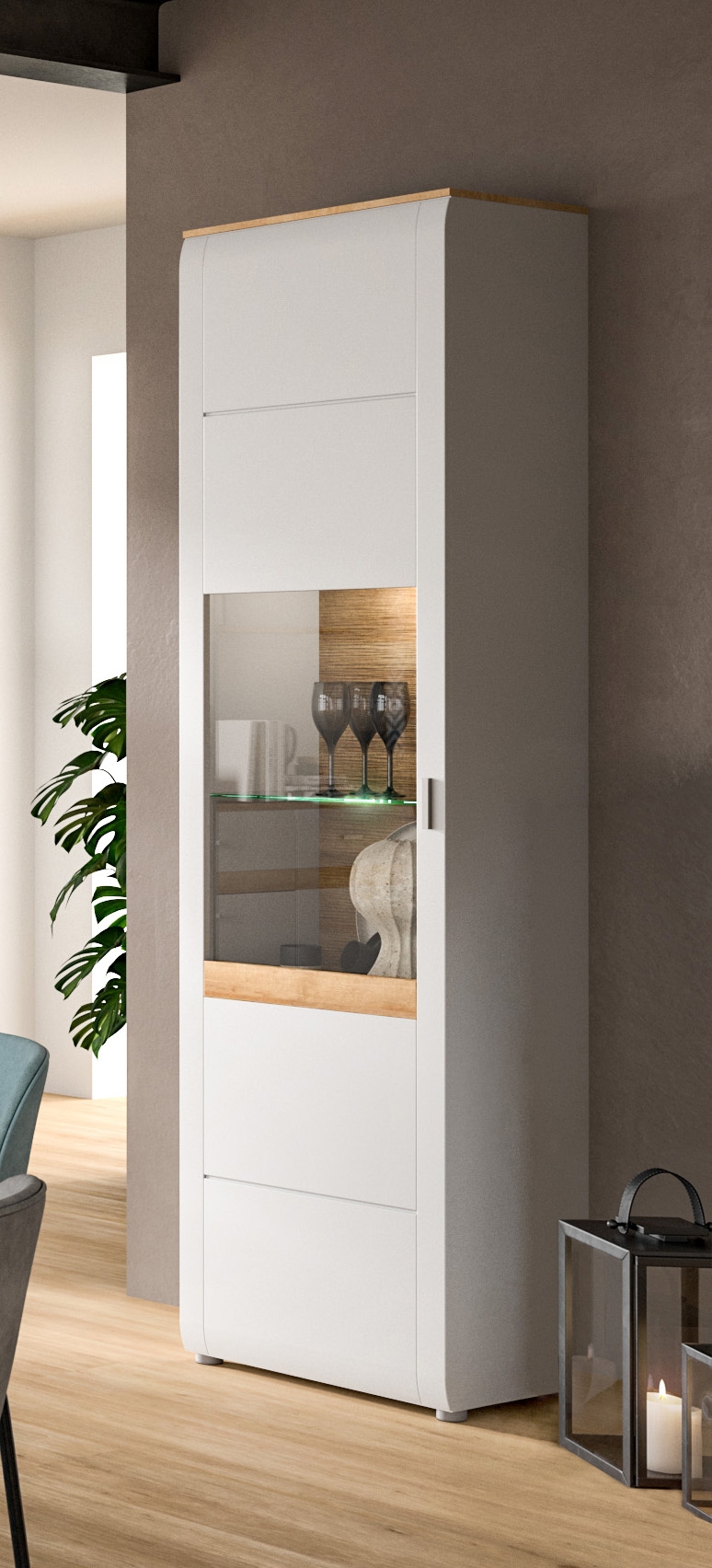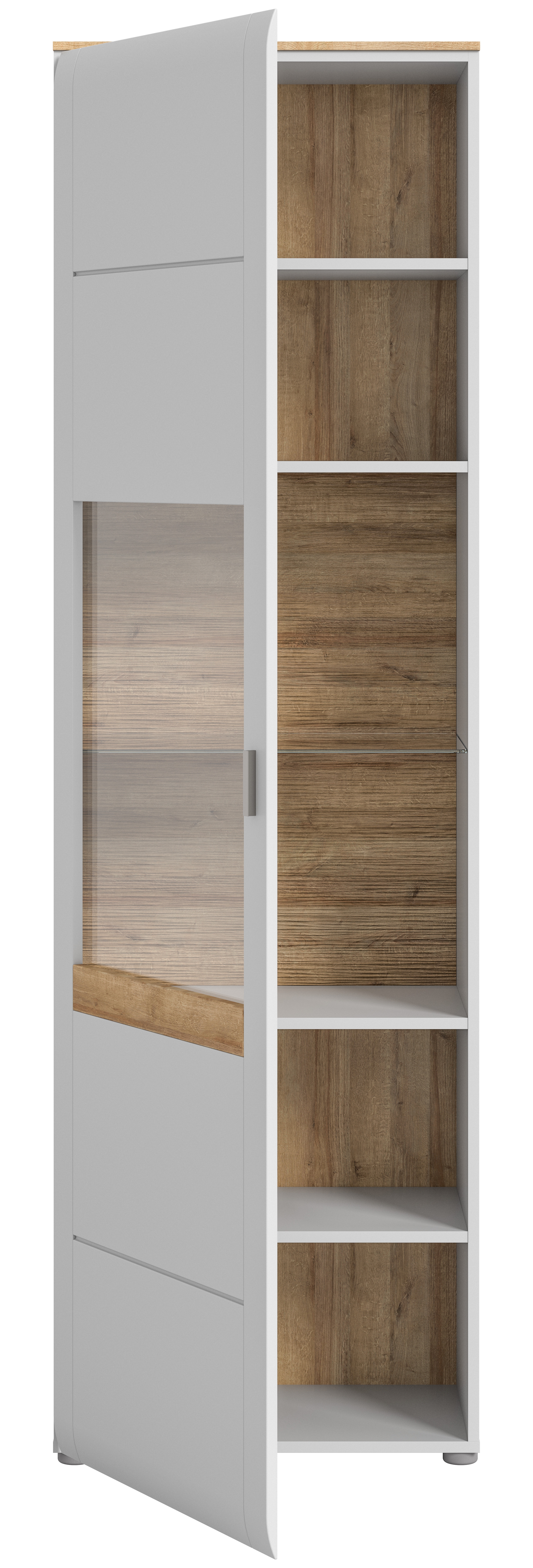 Erleben Sie raffinierte Eleganz mit einer Vitrine in Grau und Eiche. Die ideale Fusion von zeitgemäßem Design und natürlicher Ästhetik. Diese Vitrine schafft nicht nur stilvollen Stauraum, sondern setzt auch stilvolle Akzente in Ihrer Raumgestaltung. Bestellen Sie jetzt und verleihen Sie Ihrem Wohnraum eine neue Dimension von Stil und Ordnung.