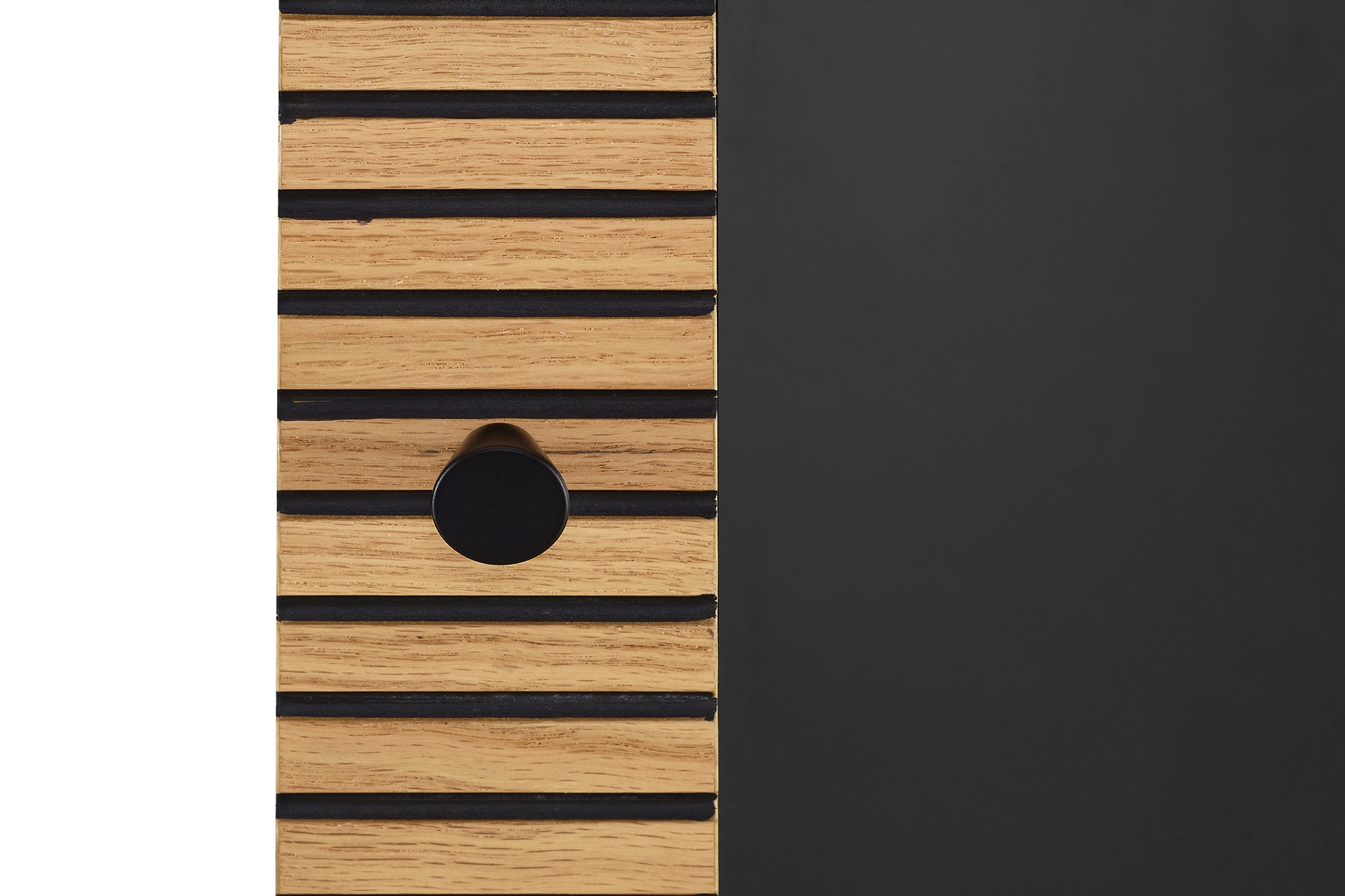 MDF (Mitteldichte Holzfaserplatte) in Eiche Holznachbildung / Eiche Echtholzfurnier (China) / Glas / Schwarz