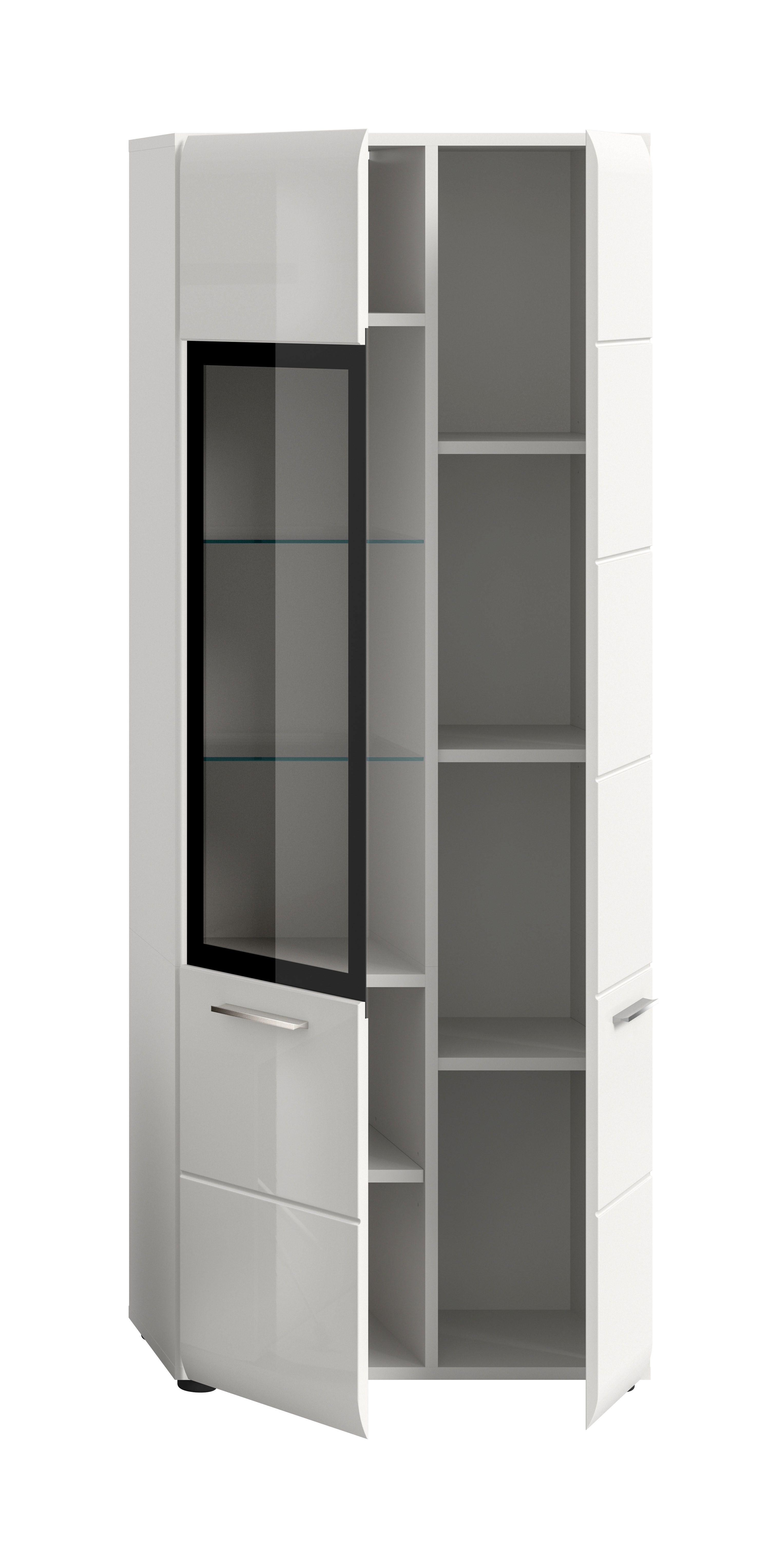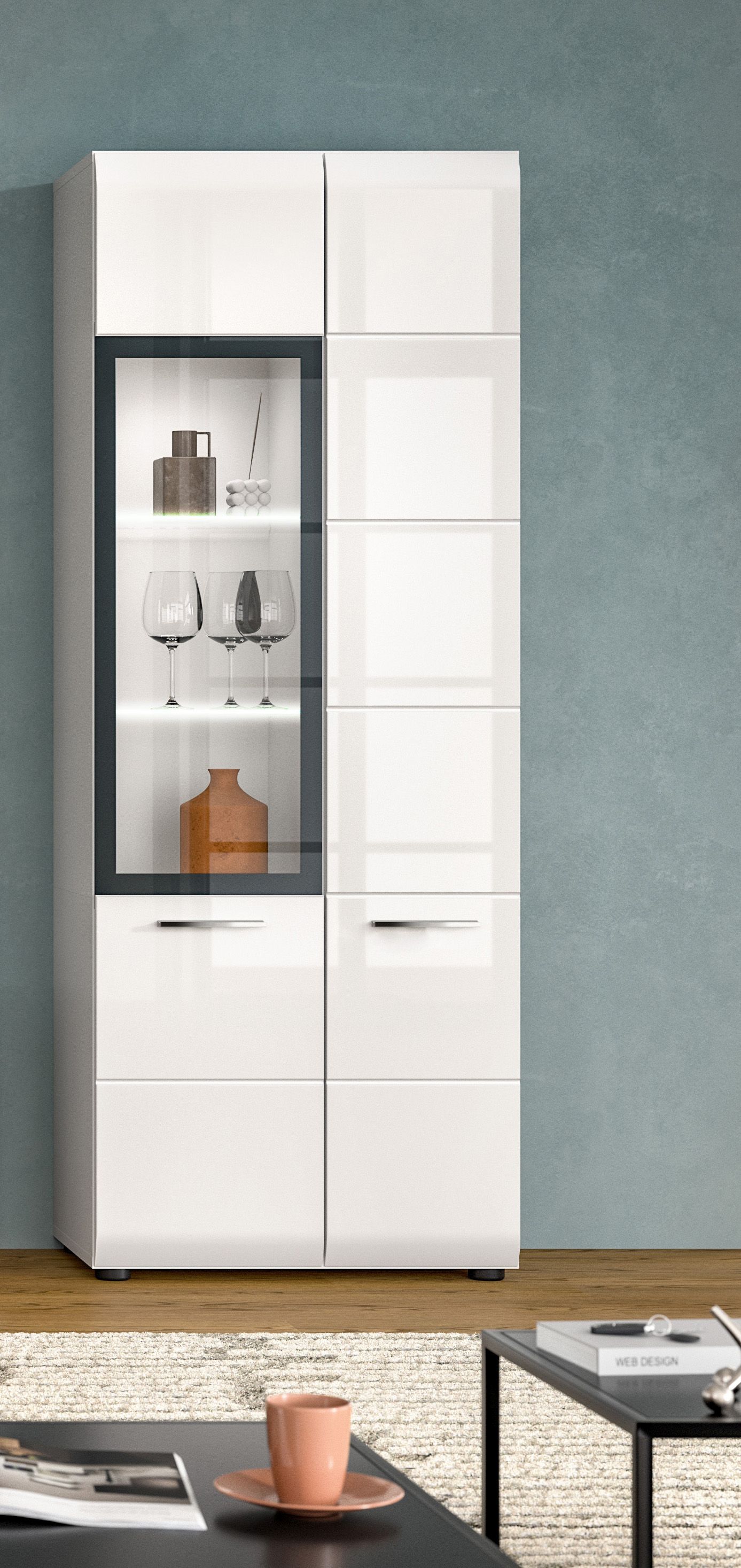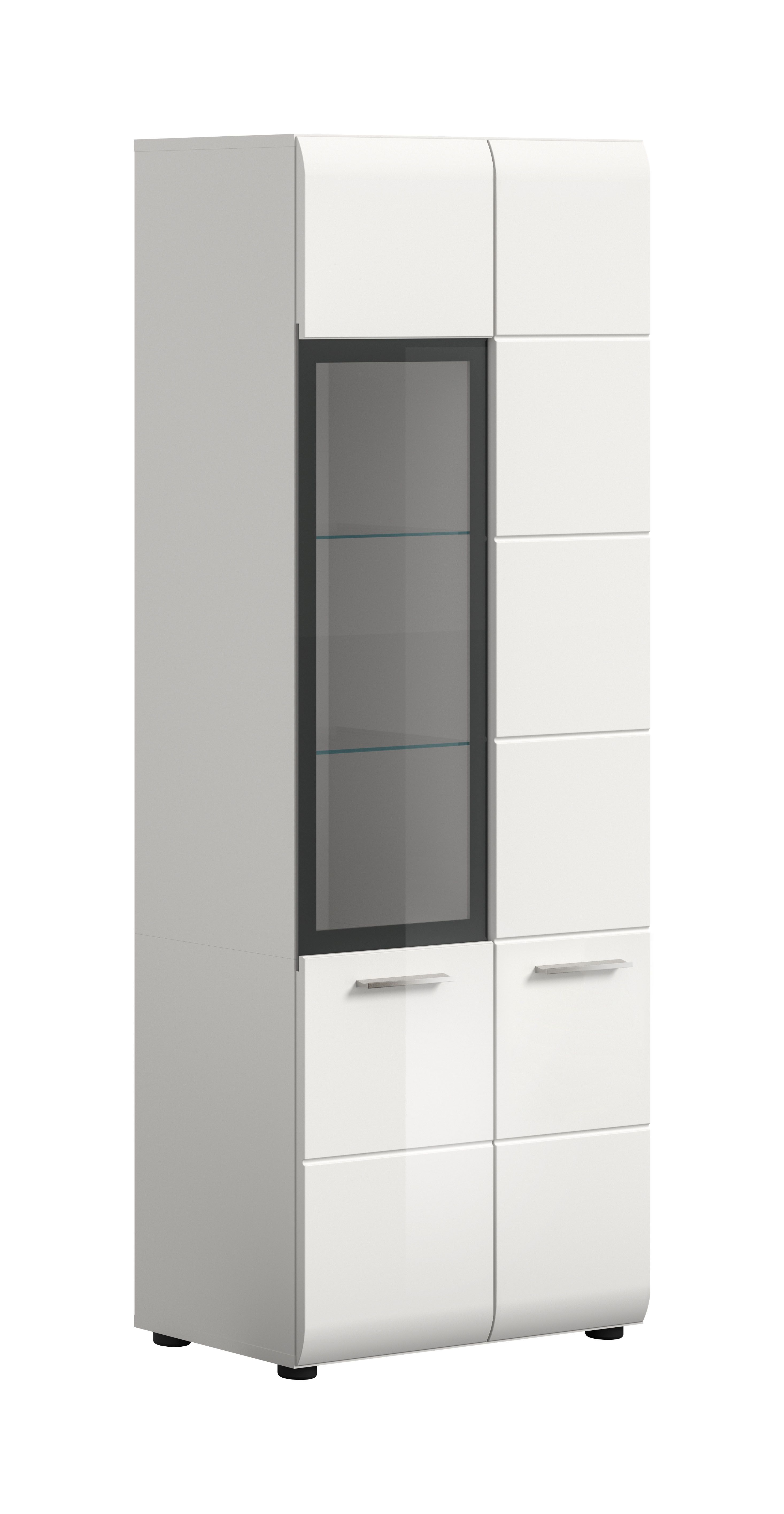 Entdecken Sie unsere vielseitige Vitrine, die Funktionalität und Stil vereint! Diese Vitrine bietet eine Tür, eine Glastür und eine Vielzahl von Ablagemöglichkeiten mit vier herausnehmbaren und höhenverstellbaren Einlegeböden sowie zwei festen Konstruktionsböden und zwei Glaseinlegeböden. Mit insgesamt zehn Fächern und den kompakten Abmessungen von 60 x 160 x 34 cm ist sie ideal für jedes Zuhause. Die MDF-Front mit Rillenfräsung verleiht der Vitrine einen modernen Look.