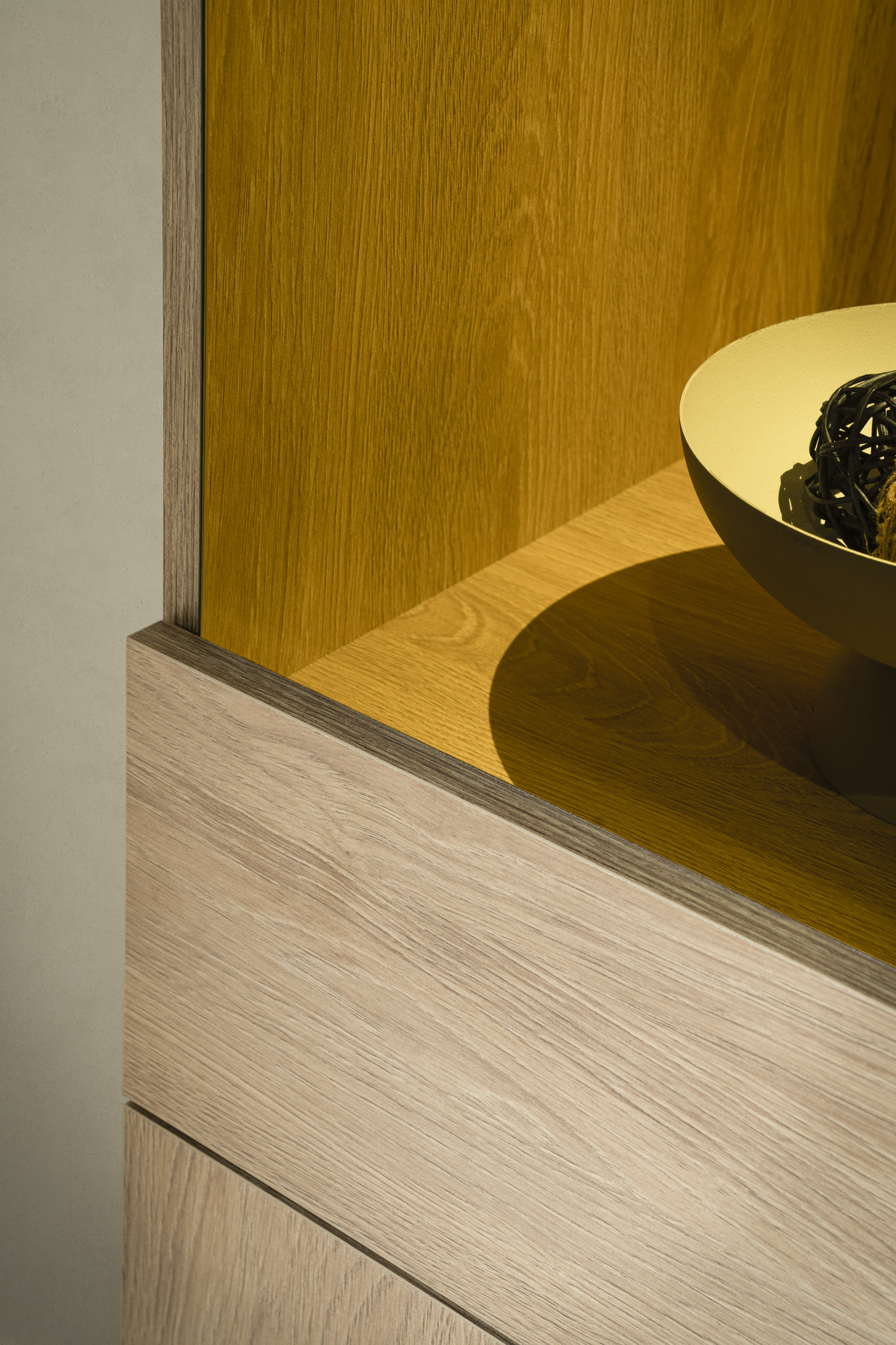 Der grifflos gestaltete Korpus mit Push-to-open-Funktion sorgt für eine klare, zeitgemäße Optik.