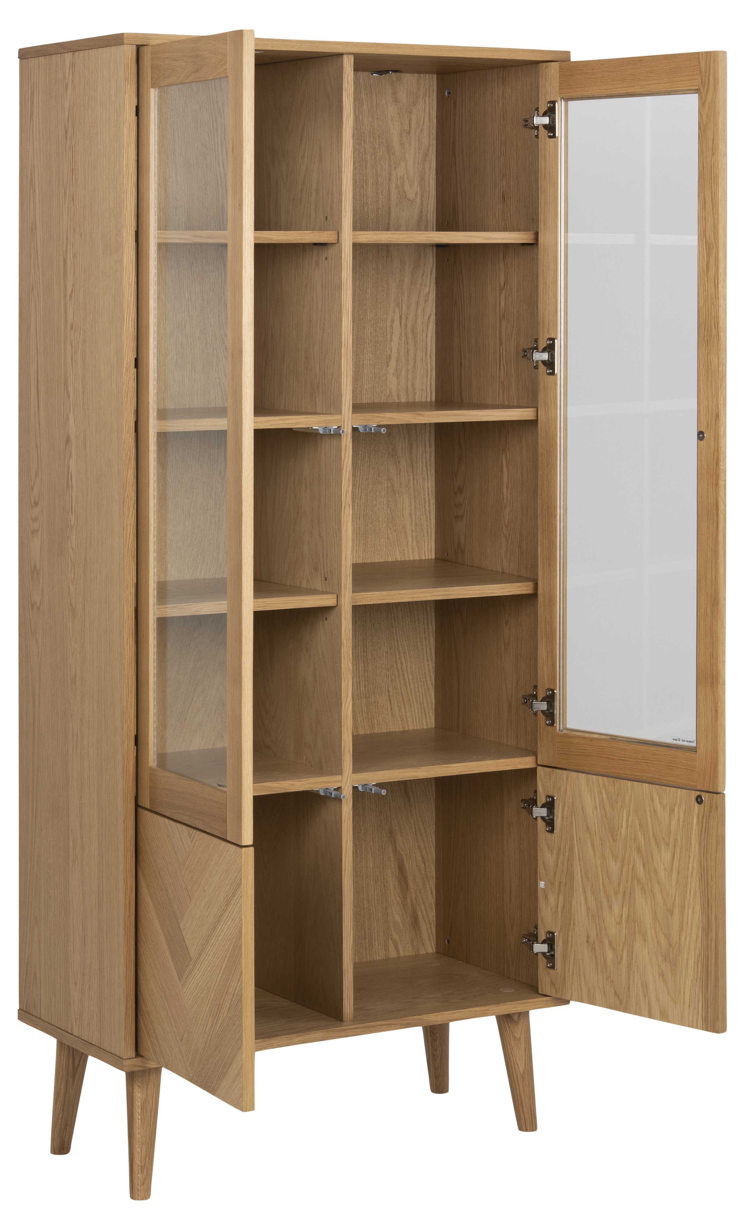 Korpus und Front: Eiche Furnier (China), lackiert / Glas