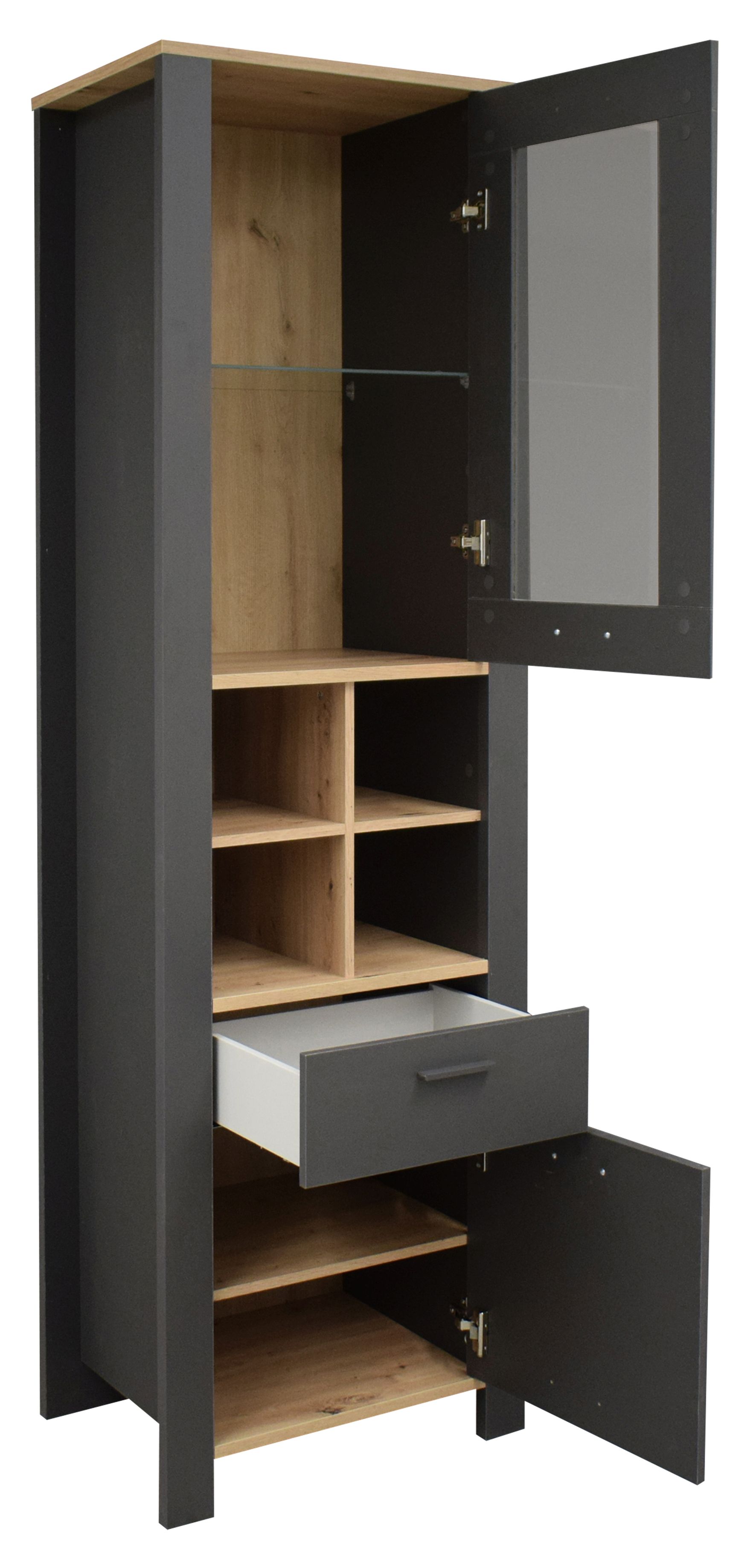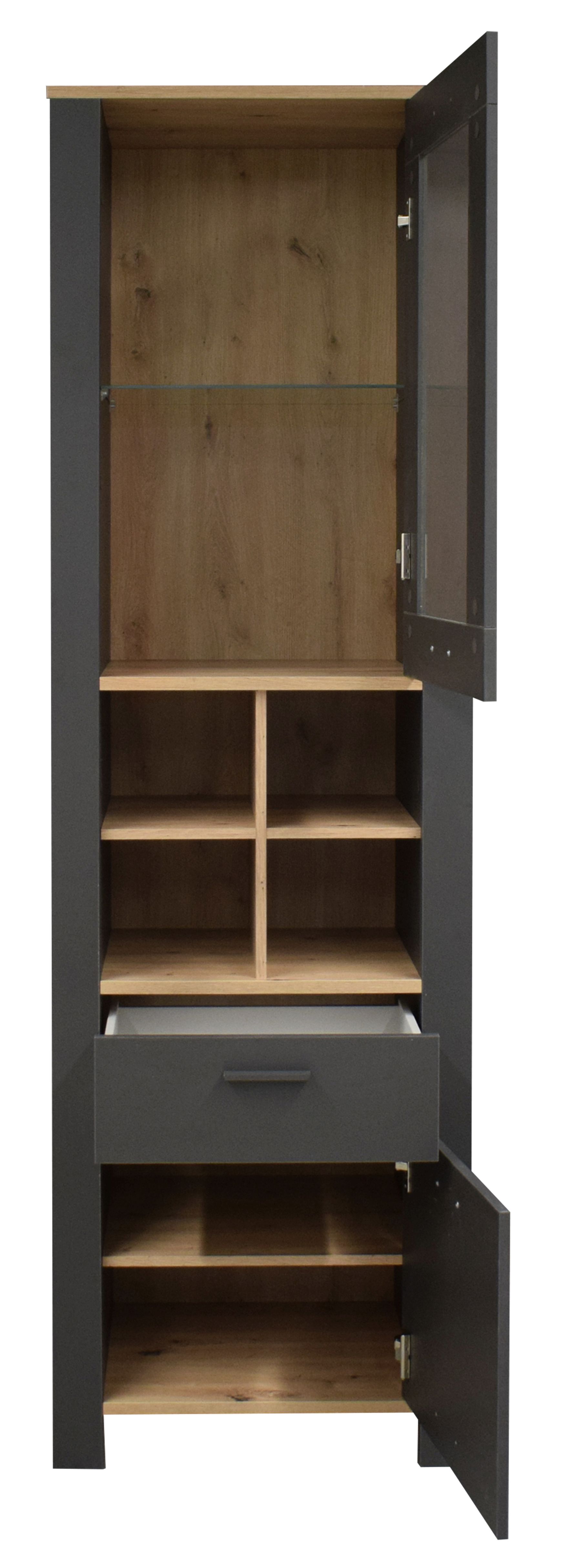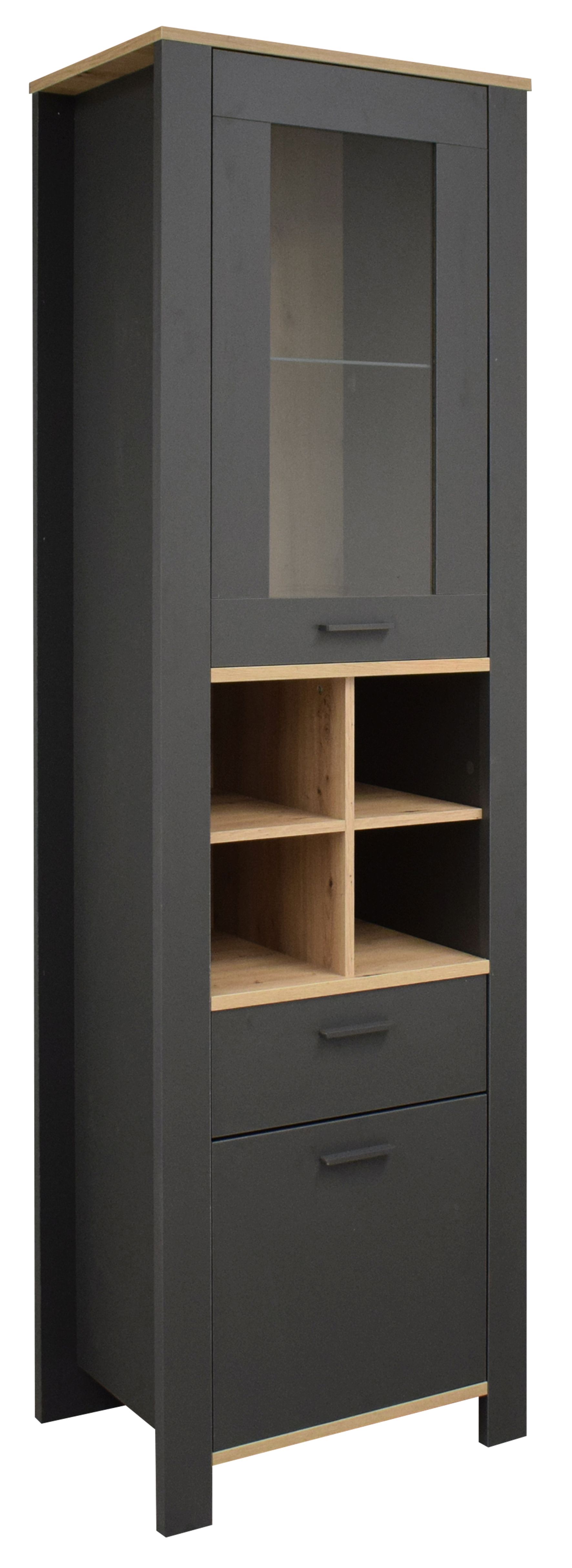 Anthrazit matt Lack kombiniert mit Asteiche Holznachbildung / Klarglas