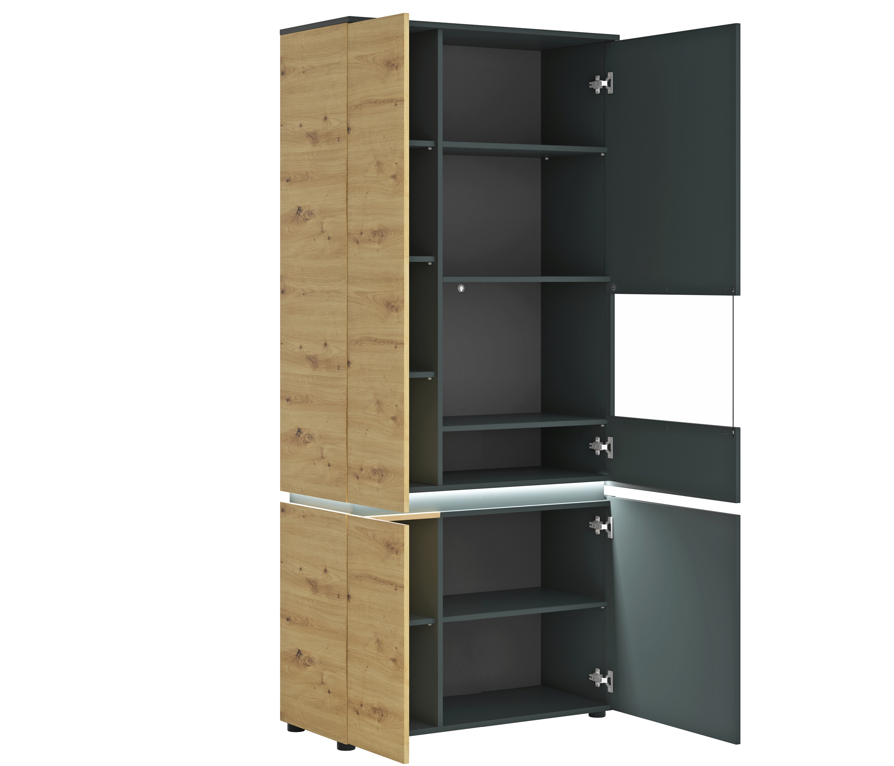 Front: Artisan Eiche Holznachbildung / Kosmos Grau / Glas