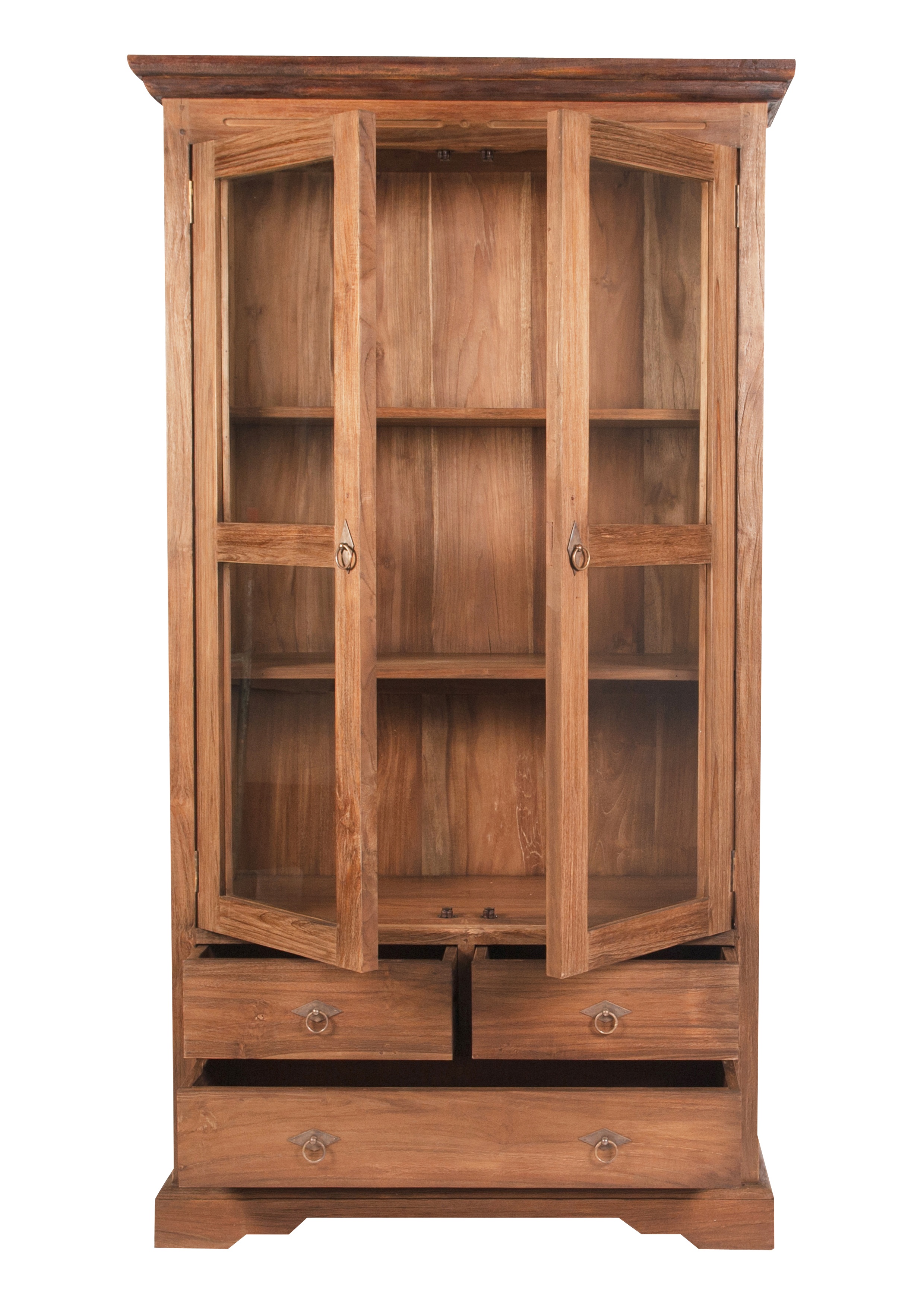 2 Türen mit Glas, dahinter 3 Fächer (2 Einlegeböden)