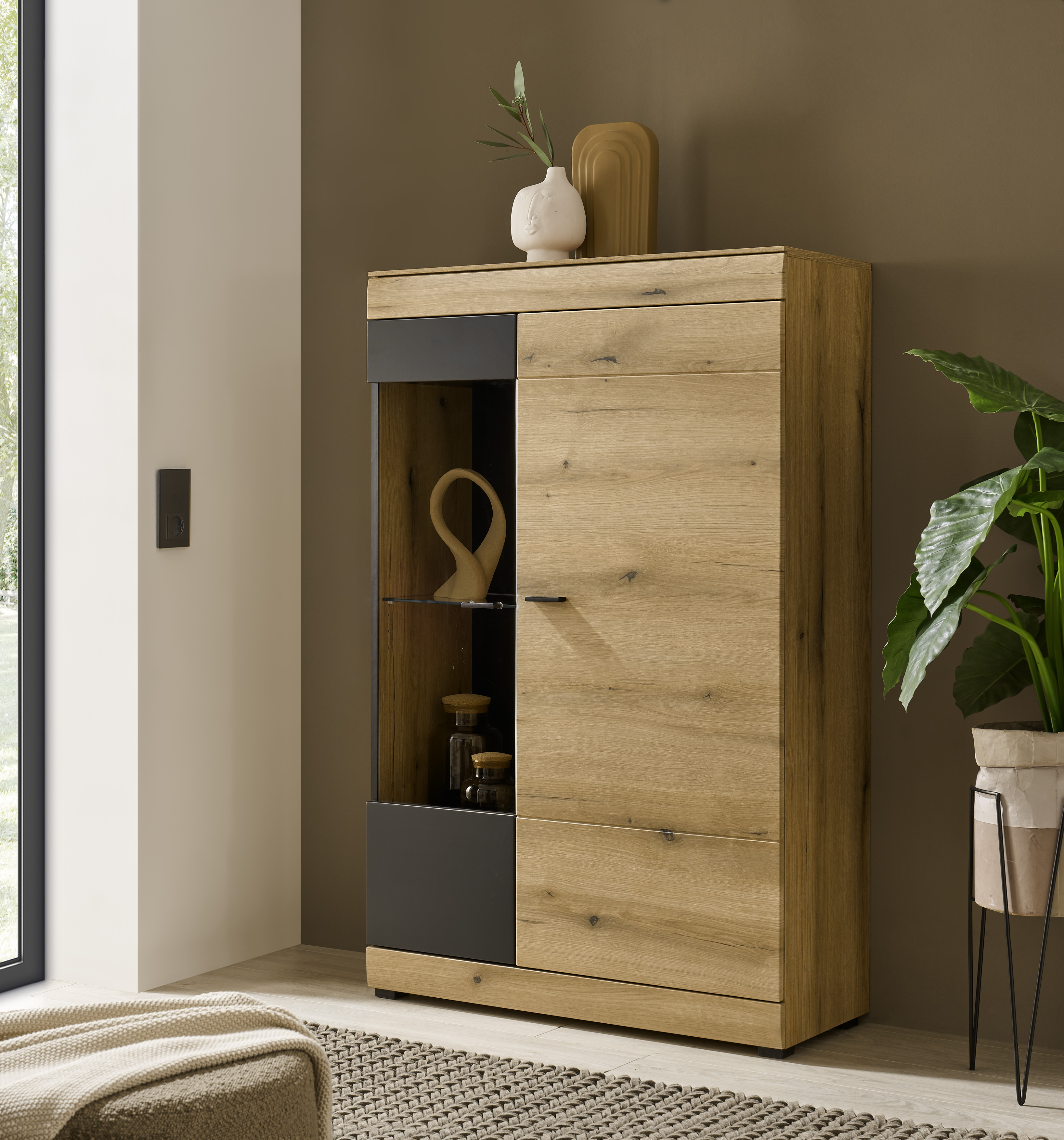 - Zeitloses Design mit Eiche-Fronten und graphitmatten Akzenten