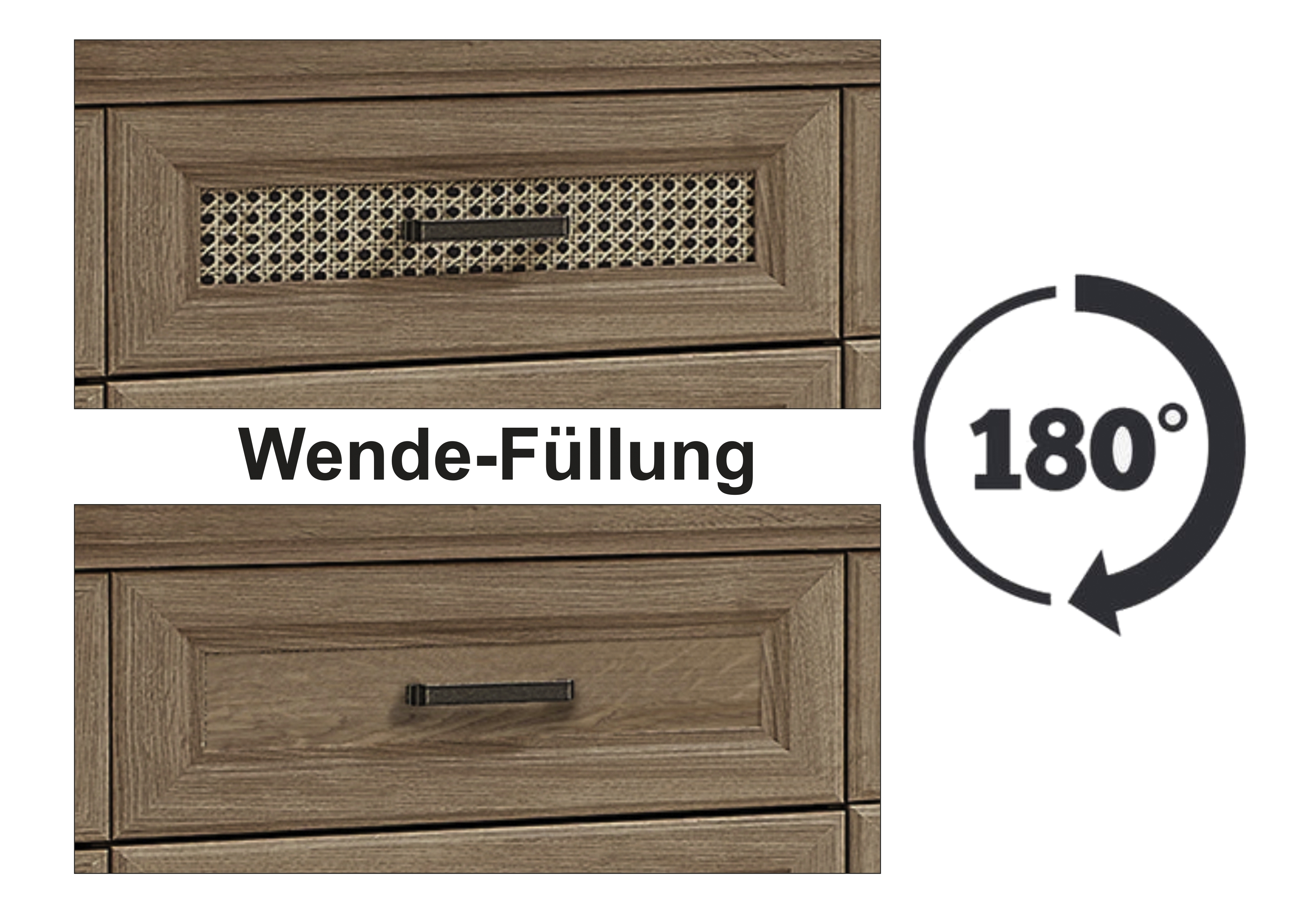 Schubladenfüllung zum Wenden: Wiener Geflecht oder Karlstad Eiche Holznachbildung