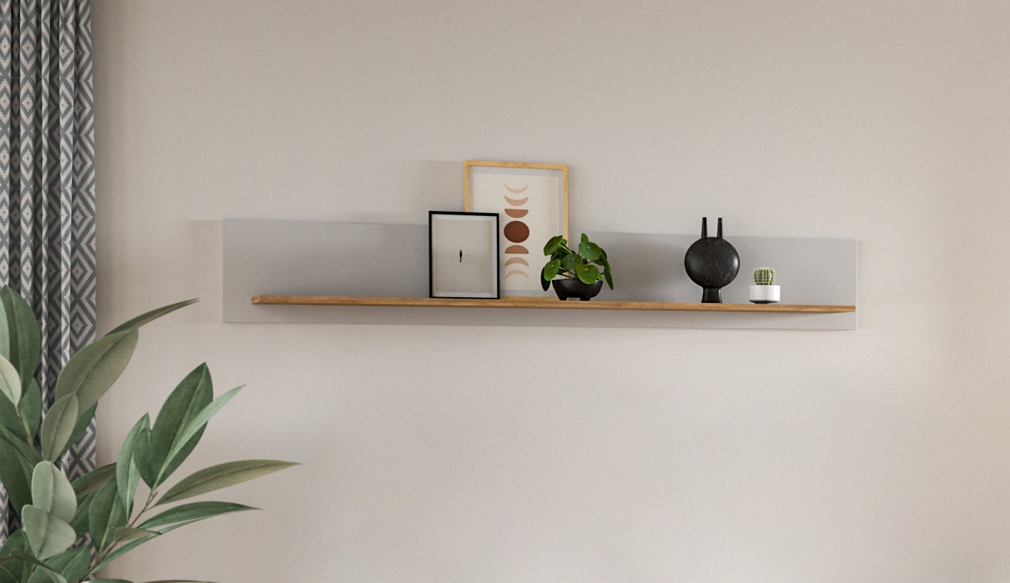 Tauchen Sie ein in stilvolle Leichtigkeit mit einem wallshelf in Grau und Eiche. Die perfekte Symbiose von modernem Design und natürlicher Ästhetik. Dieses wallshelf vereint dekorative Eleganz mit funktionalem Stauraum und verleiht Ihrem Raum einen Hauch von zeitloser Schönheit. Bestellen Sie jetzt und verwandeln Sie Ihre Wand in einen Blickfang mit organisatorischem Mehrwert.