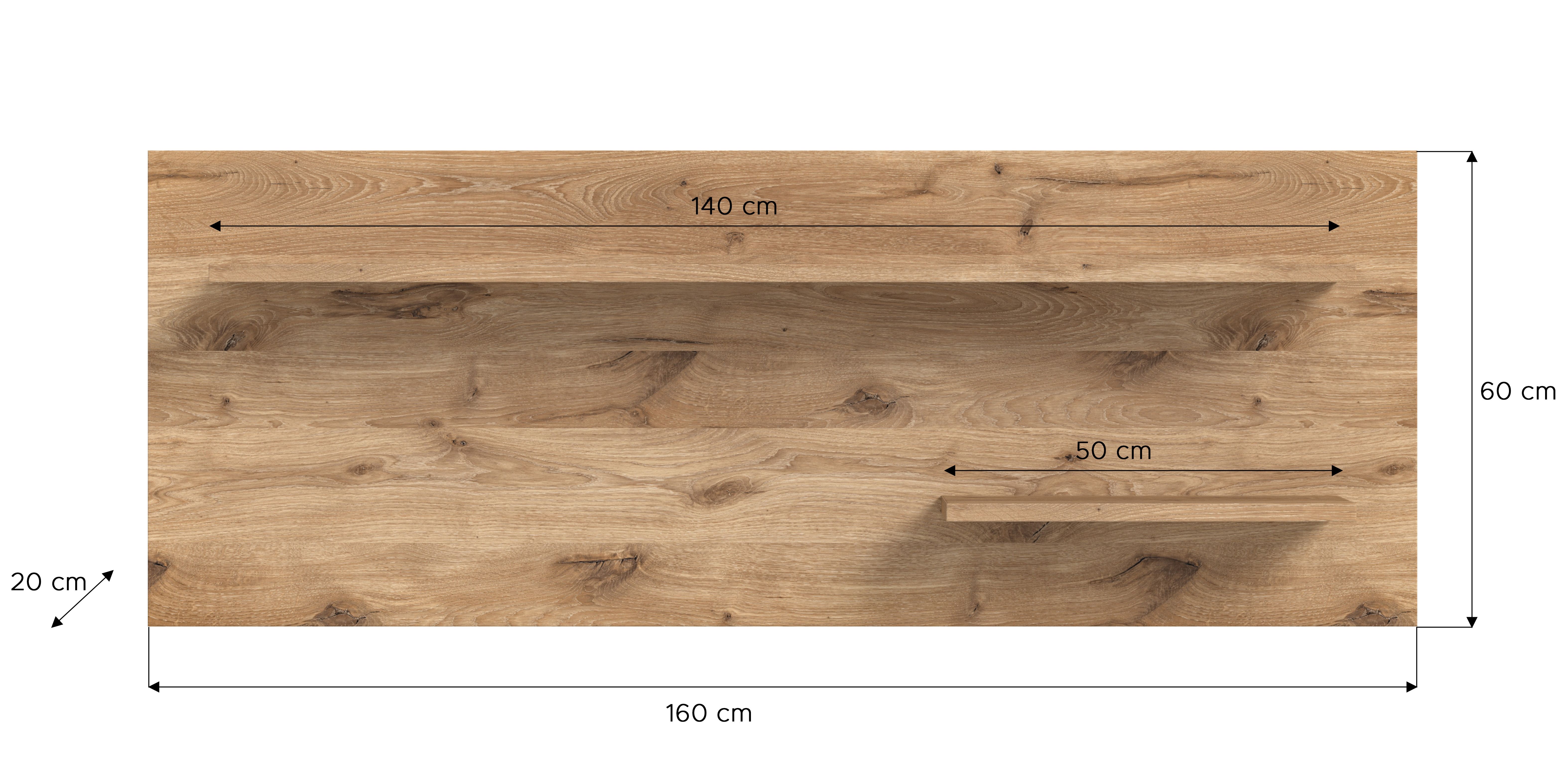 - Design/Stil: Das wallshelf in Nox Oak Nachbildung besticht durch sein modernes und minimalistisches Design. Die natürliche Holzoptik verleiht dem Raum eine warme Atmosphäre, während das schwebende Design eine elegante und platzsparende Lösung bietet, um Dekorationsgegenstände stilvoll zu präsentieren.