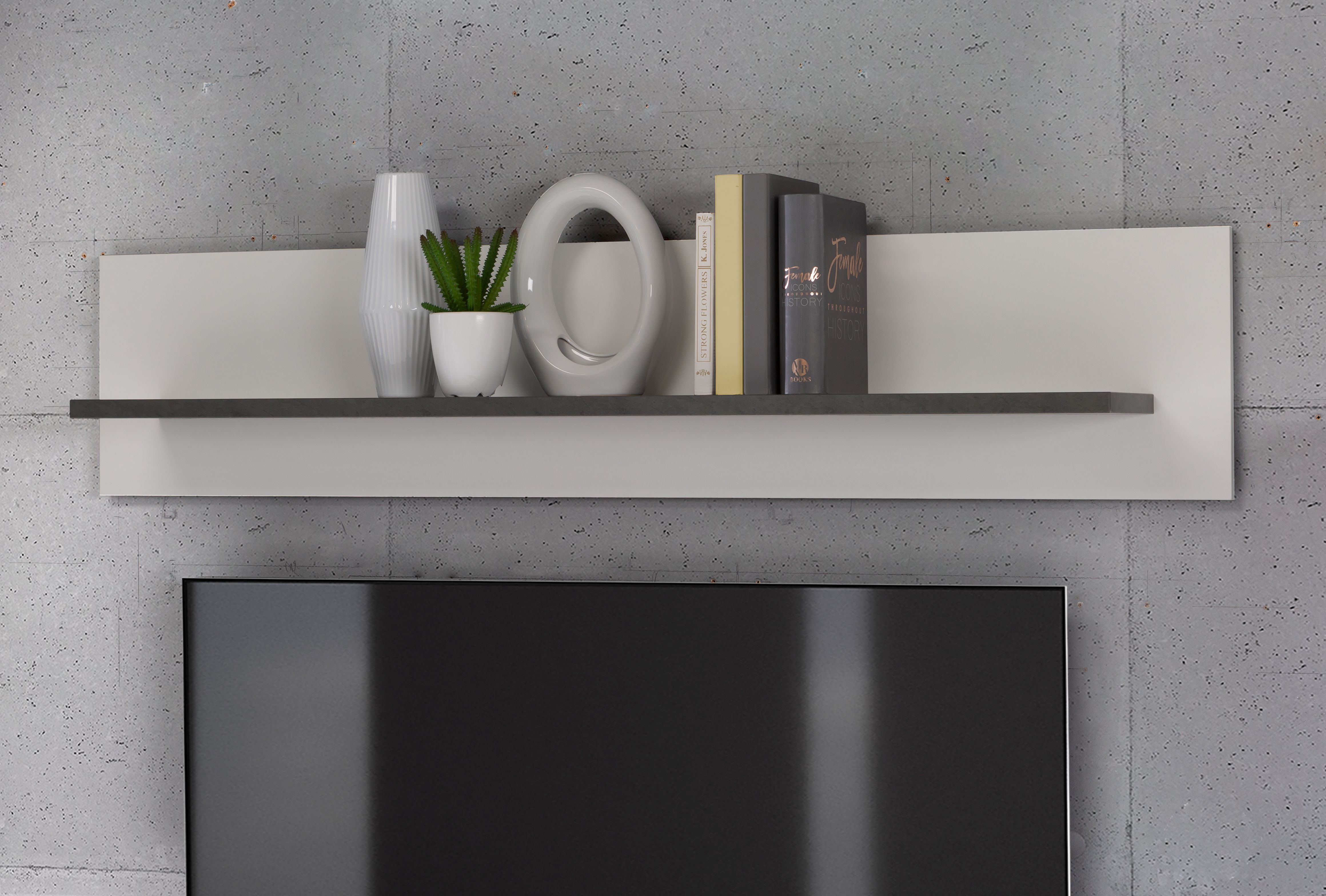Front und Korpus: Weiß kombiniert mit Absetzungen in Concrete Optik Dark Gray