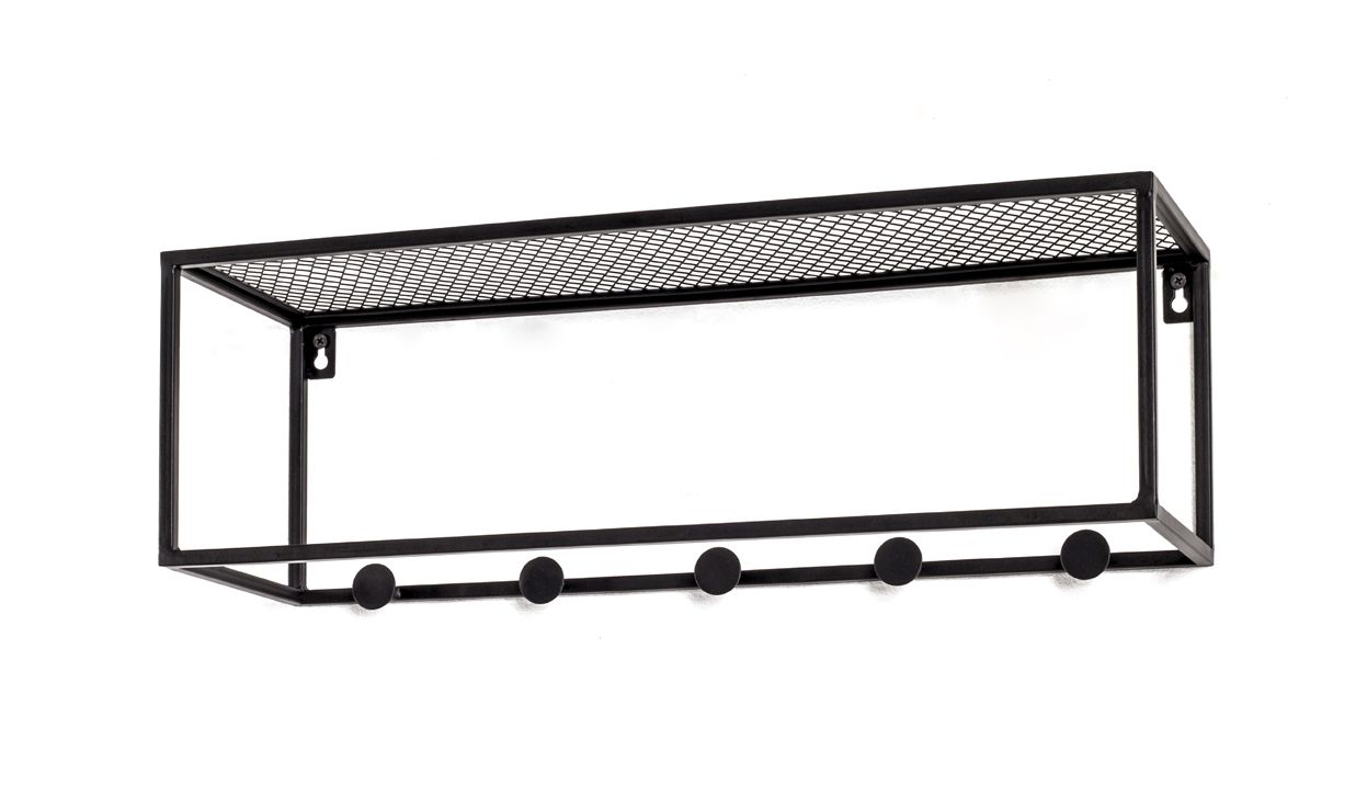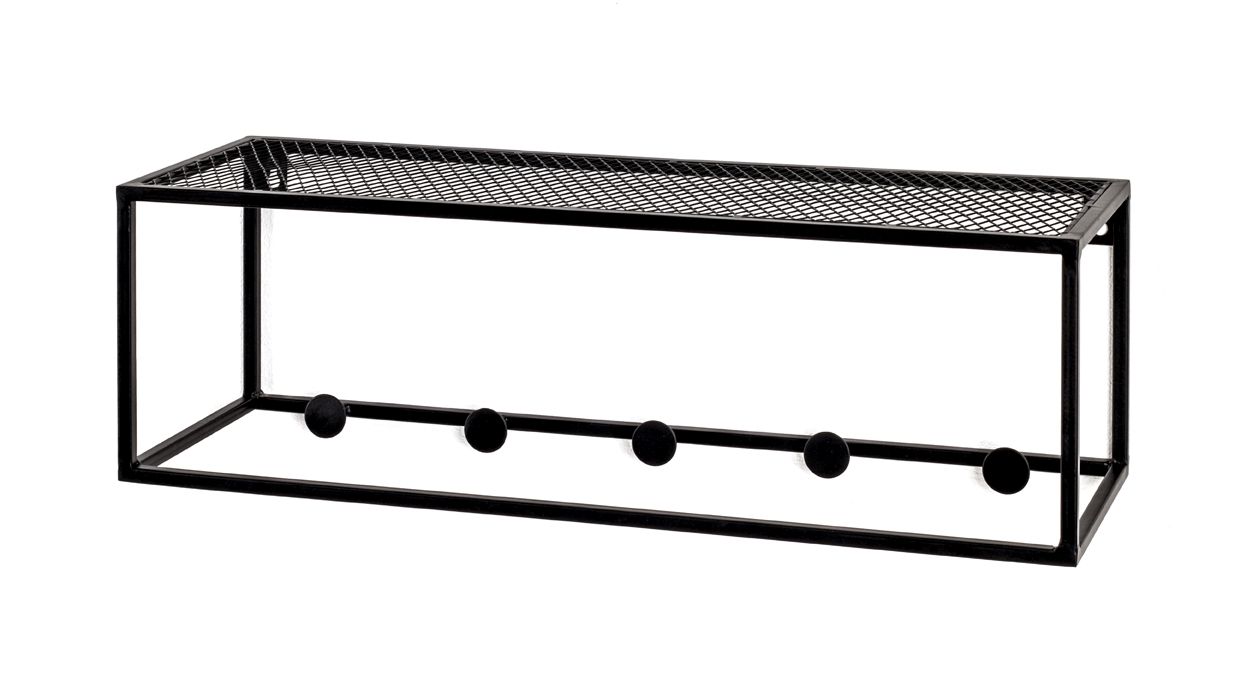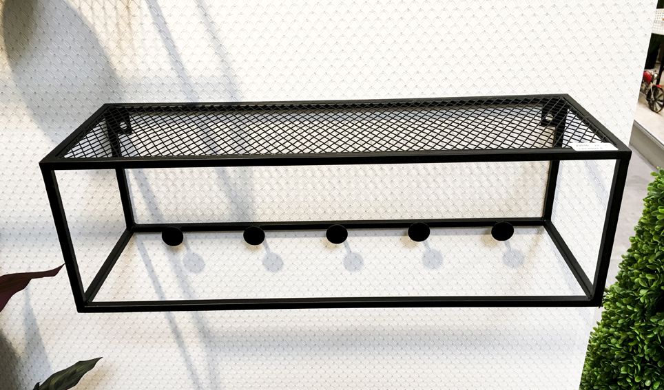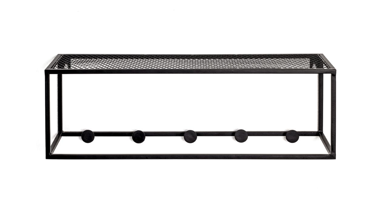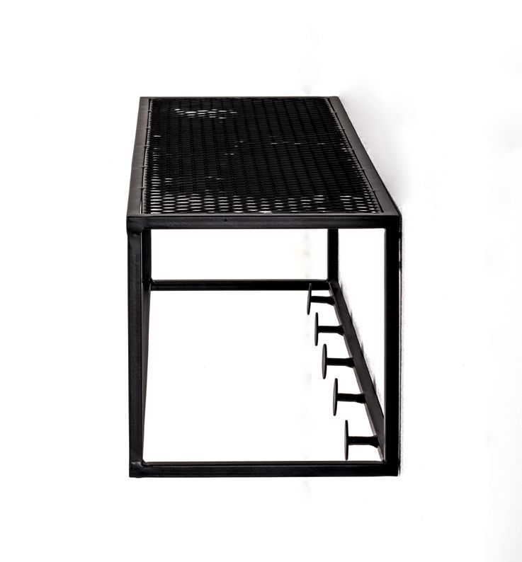 aus Stahlrohr in schwarz lackiert mit einer Ablage aus einem Metallgeflecht in schwarz lackiert