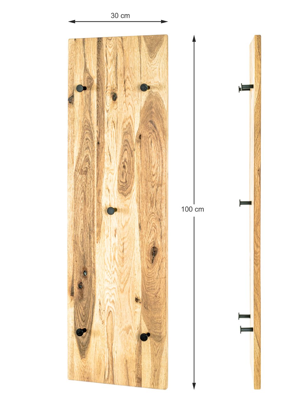 aus Massivholz (China) Eiche geölt (Royal Oak) mit Haken aus Metall in schwarz pulverbeschichtet