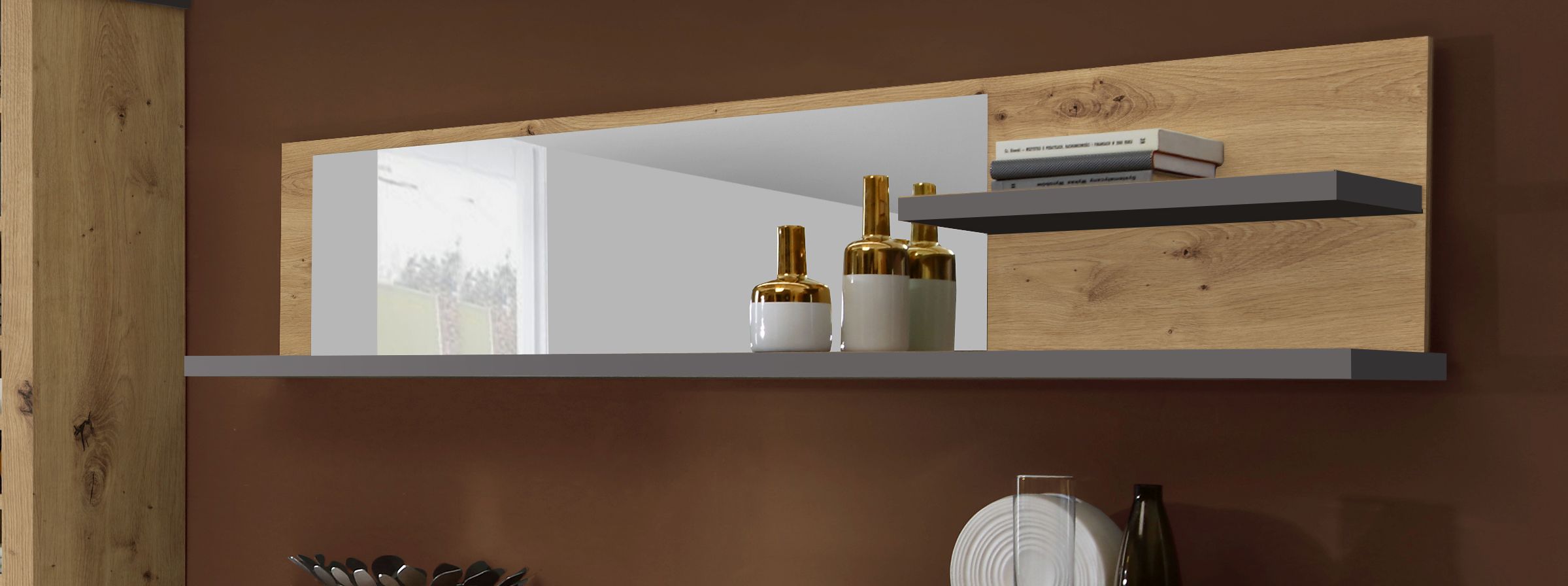 Artisan Eiche Holznachbildung kombiniert mit Dunkelgrau / Spiegel