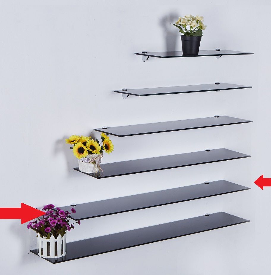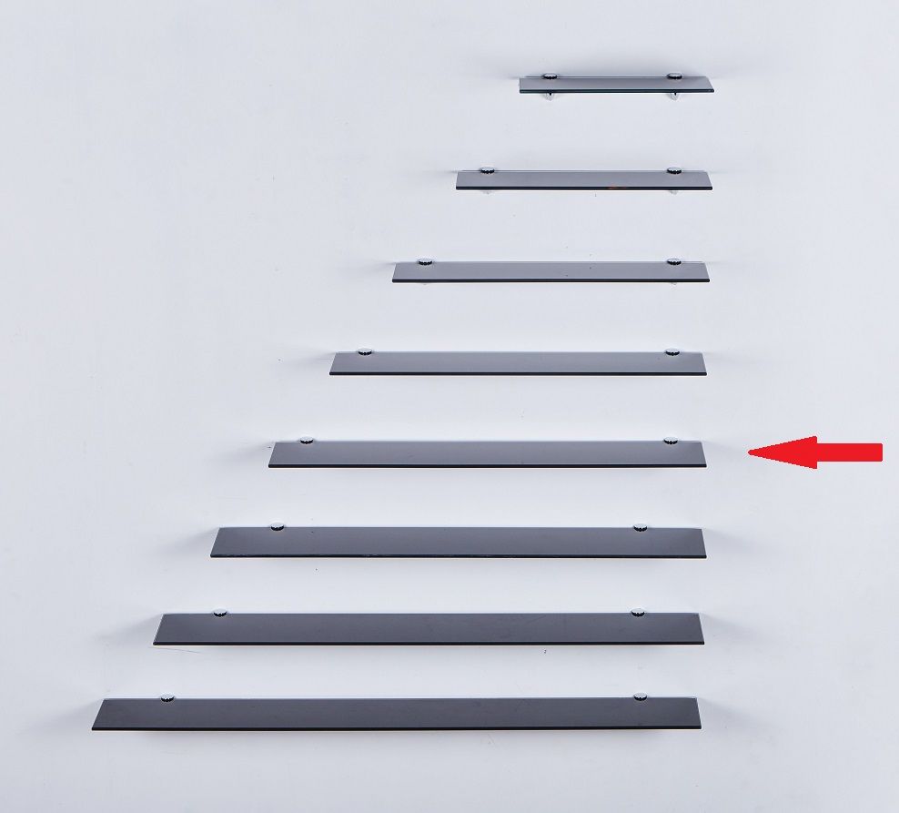 Sicherheitsglas in schwarz kombiniert mit 2 Halterungen aus Chrom