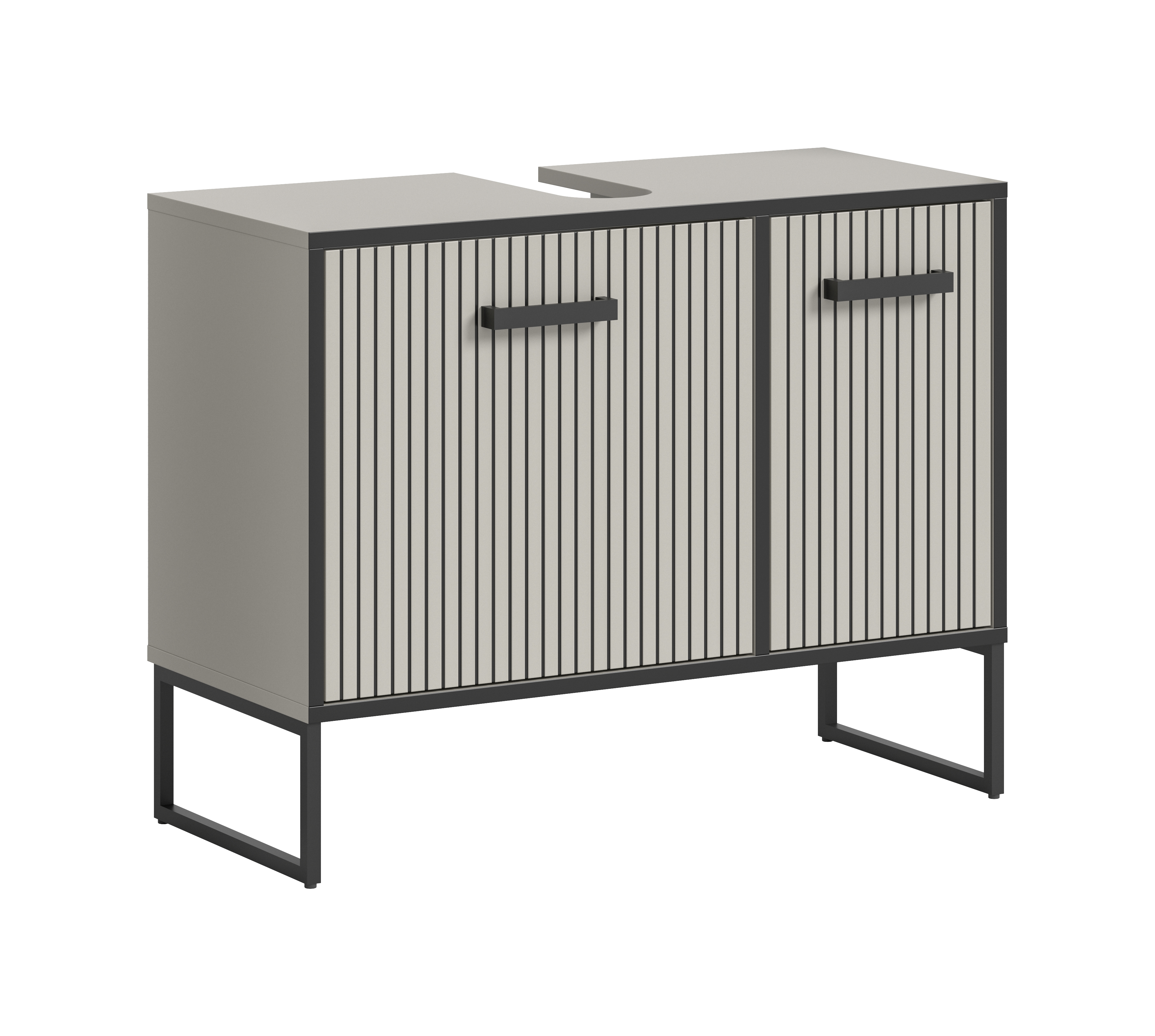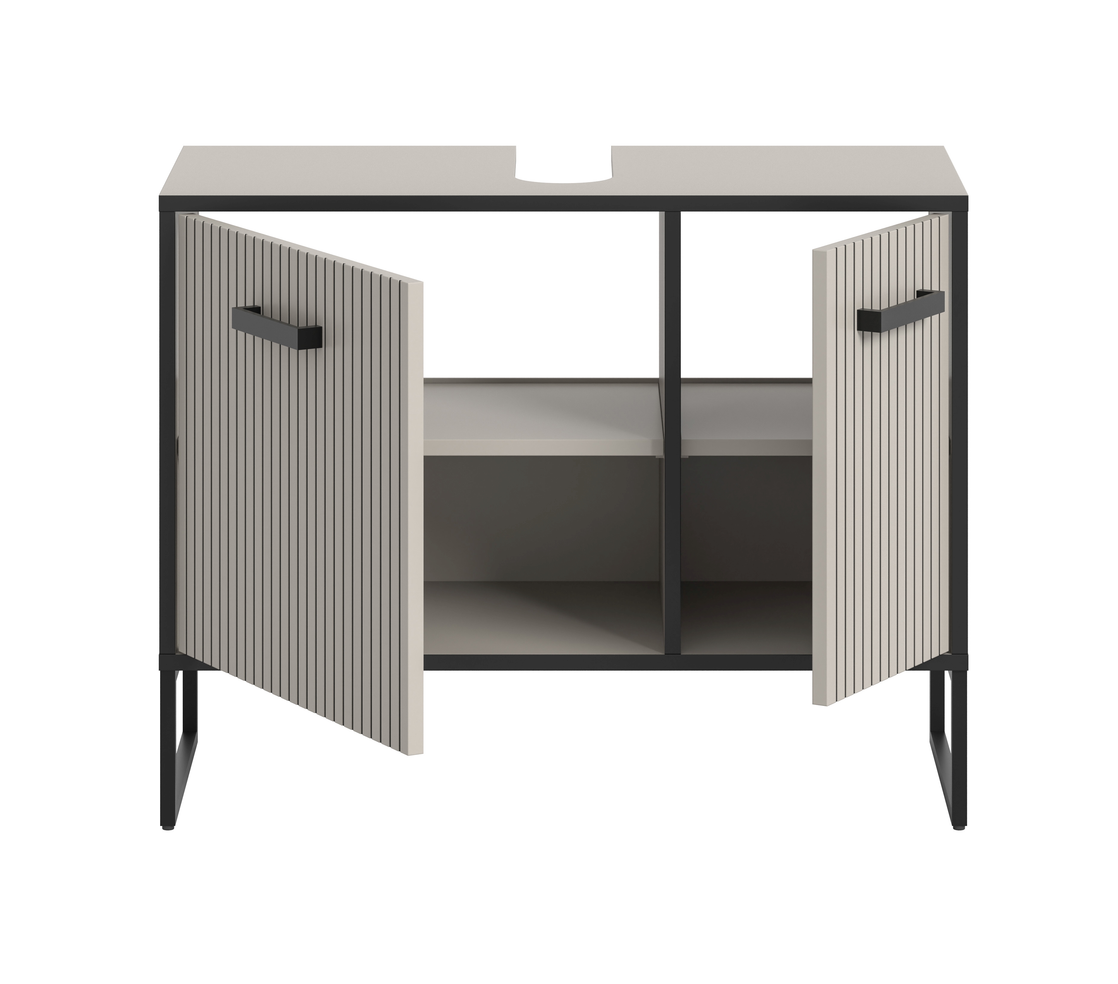 Schaffen Sie Stauraum in Ihrem Badezimmer mit unserem praktischen Waschbeckenunterschrank. Mit zwei Türen und gesteckten Einlegeböden, die höhenverstellbar sind, finden Sie ausreichend Platz für Handtücher und Pflegeprodukte. Der Siphonausschnitt sorgt dafür, dass alles ordentlich verstaut ist, während die stilvolle Rillenoptik den Raum aufwertet.