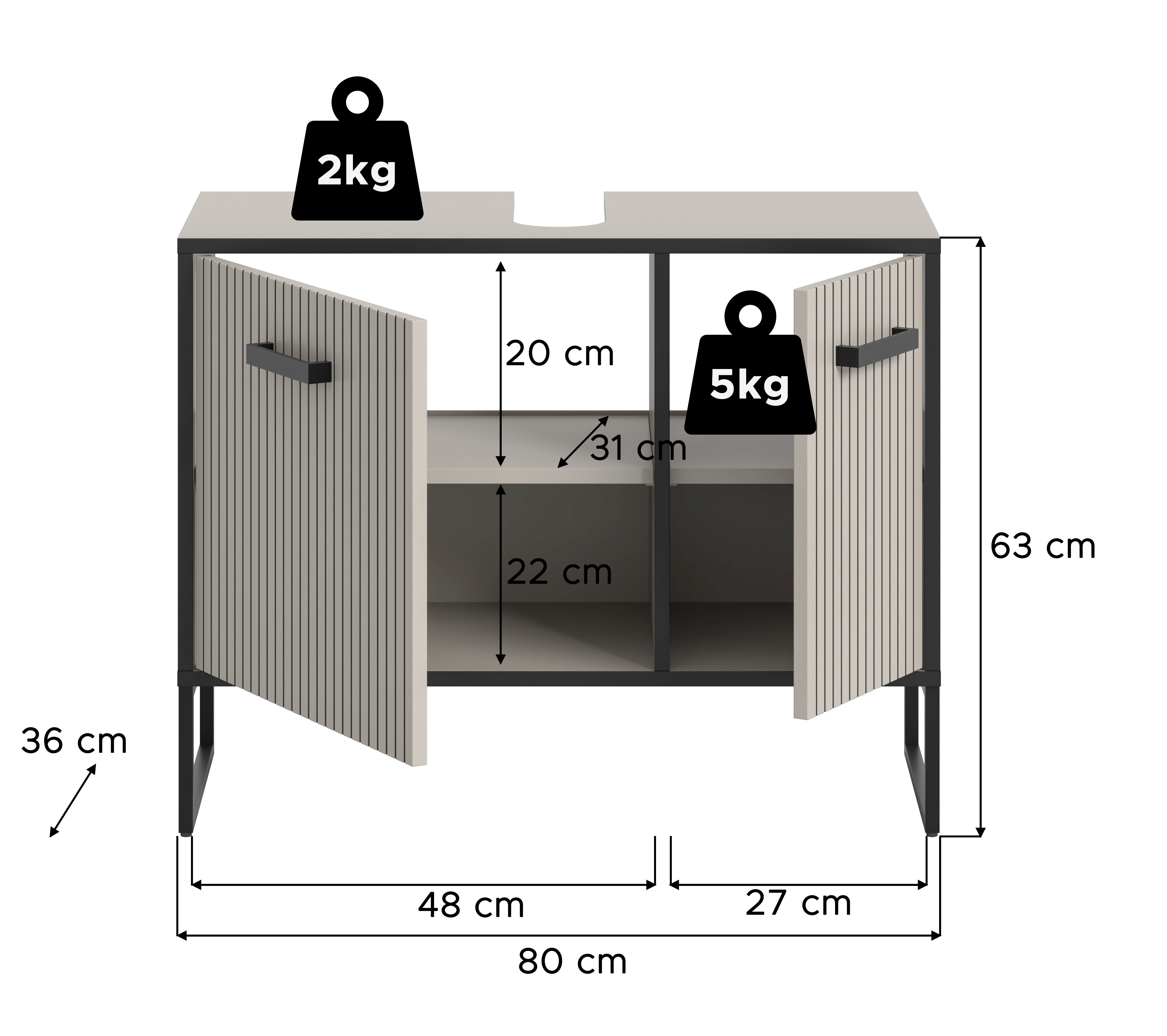 | Waschbeckenunterschrank | 80 | 63 | 36 |