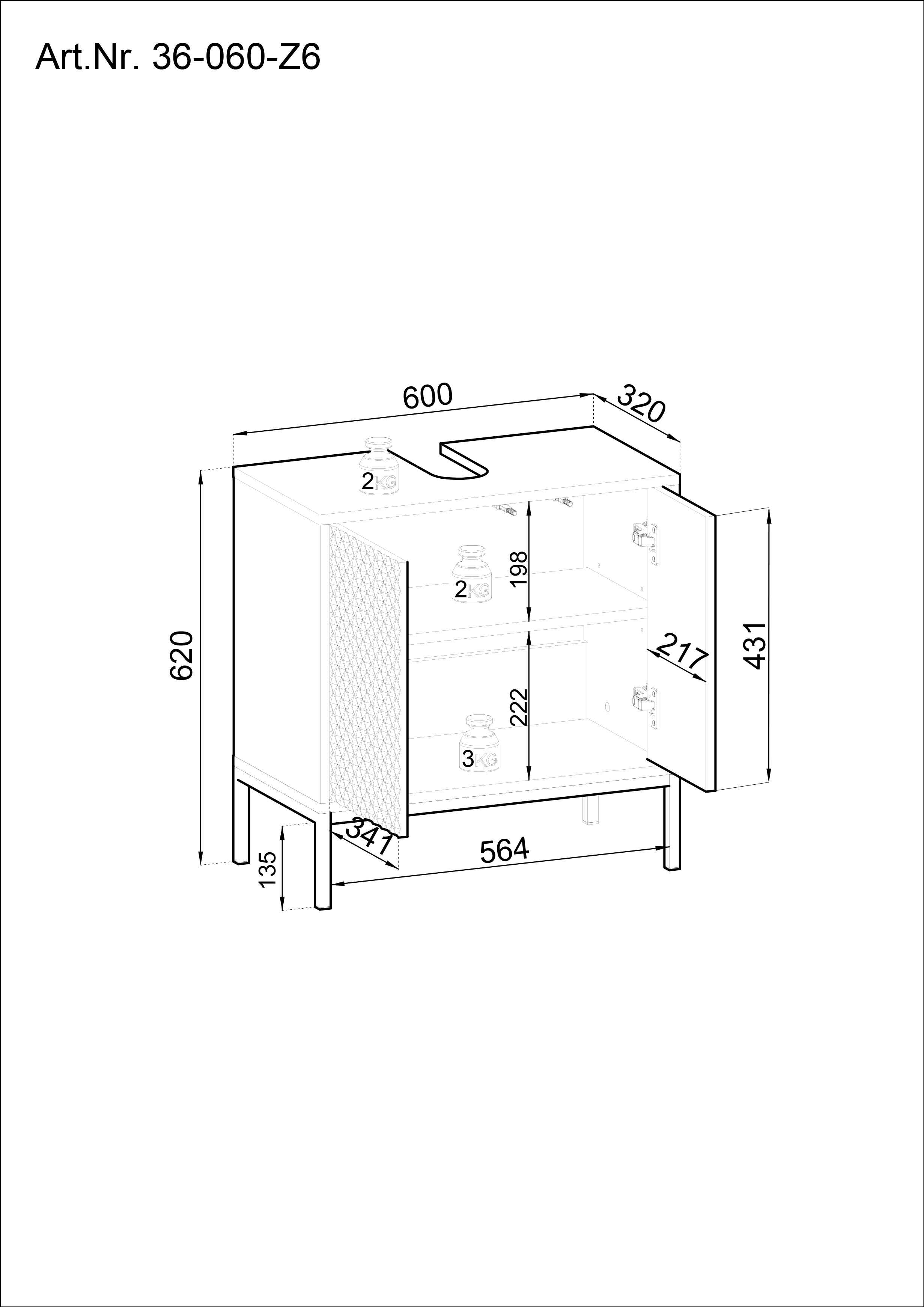 | Waschbeckenunterschrank | 60 | 62 | 32 |