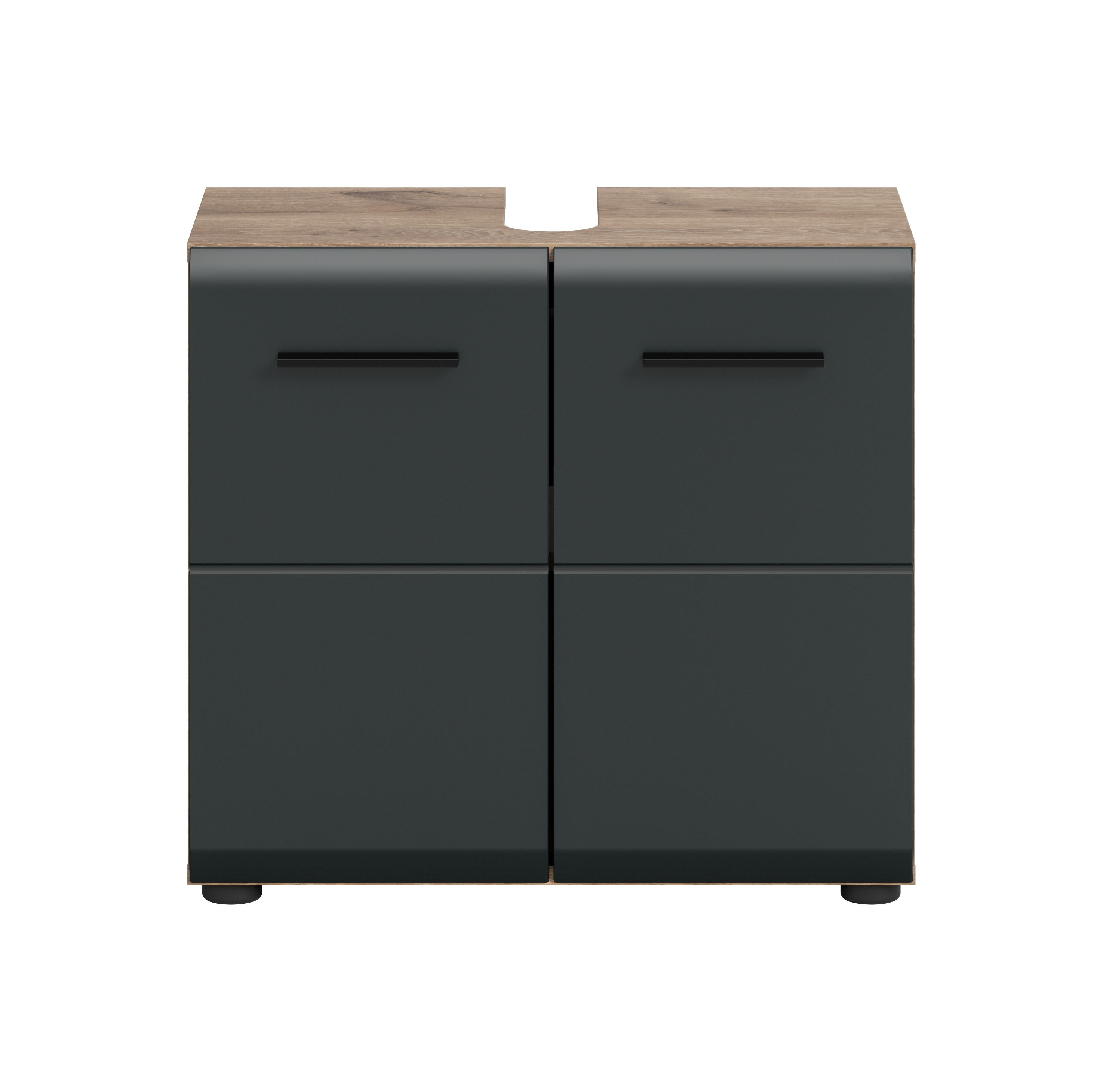 Waschbeckenunterschrank (B/H/T: 60x54x32 cm) in Schwarz matt und Nox Eiche Holznachbildung.