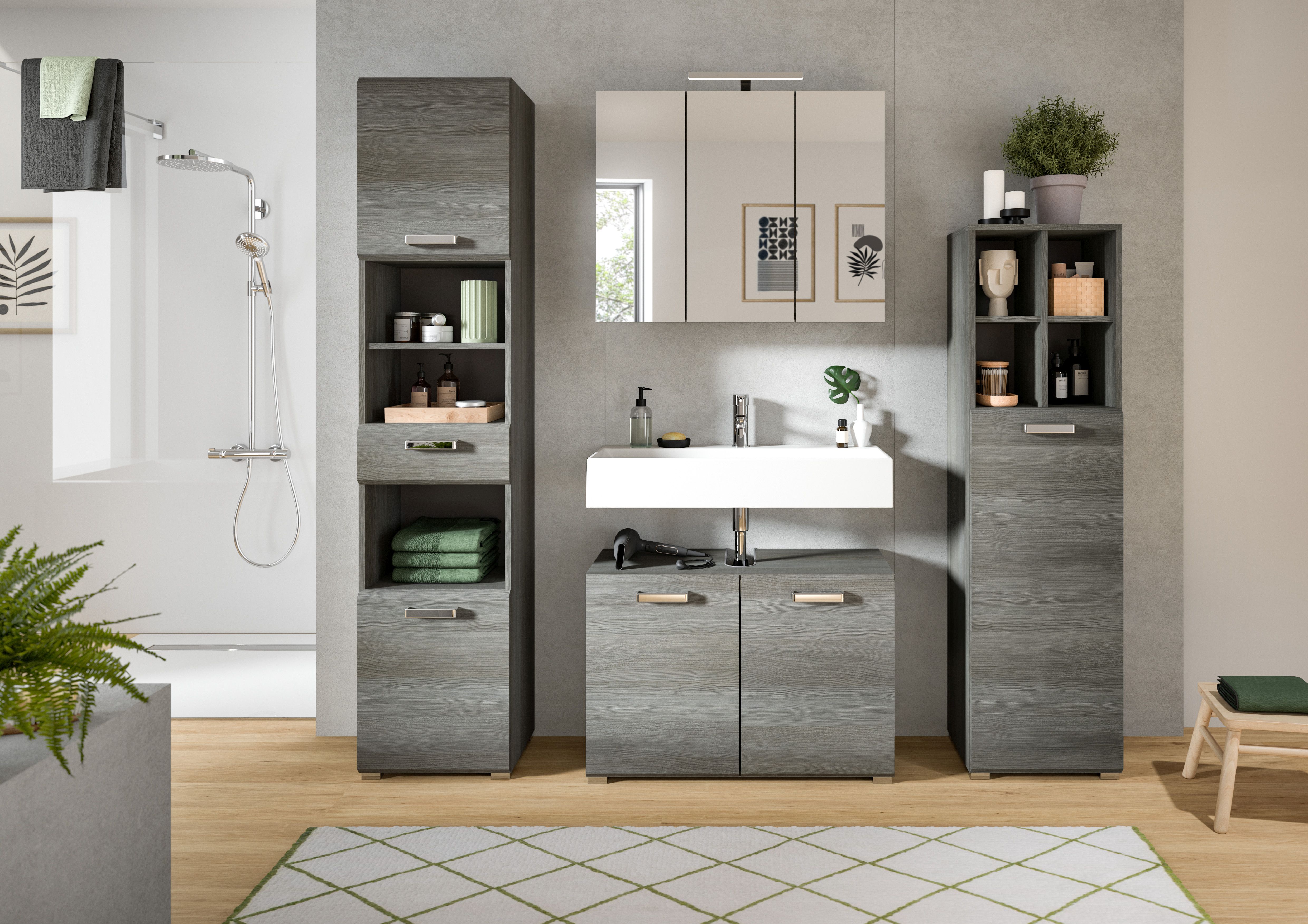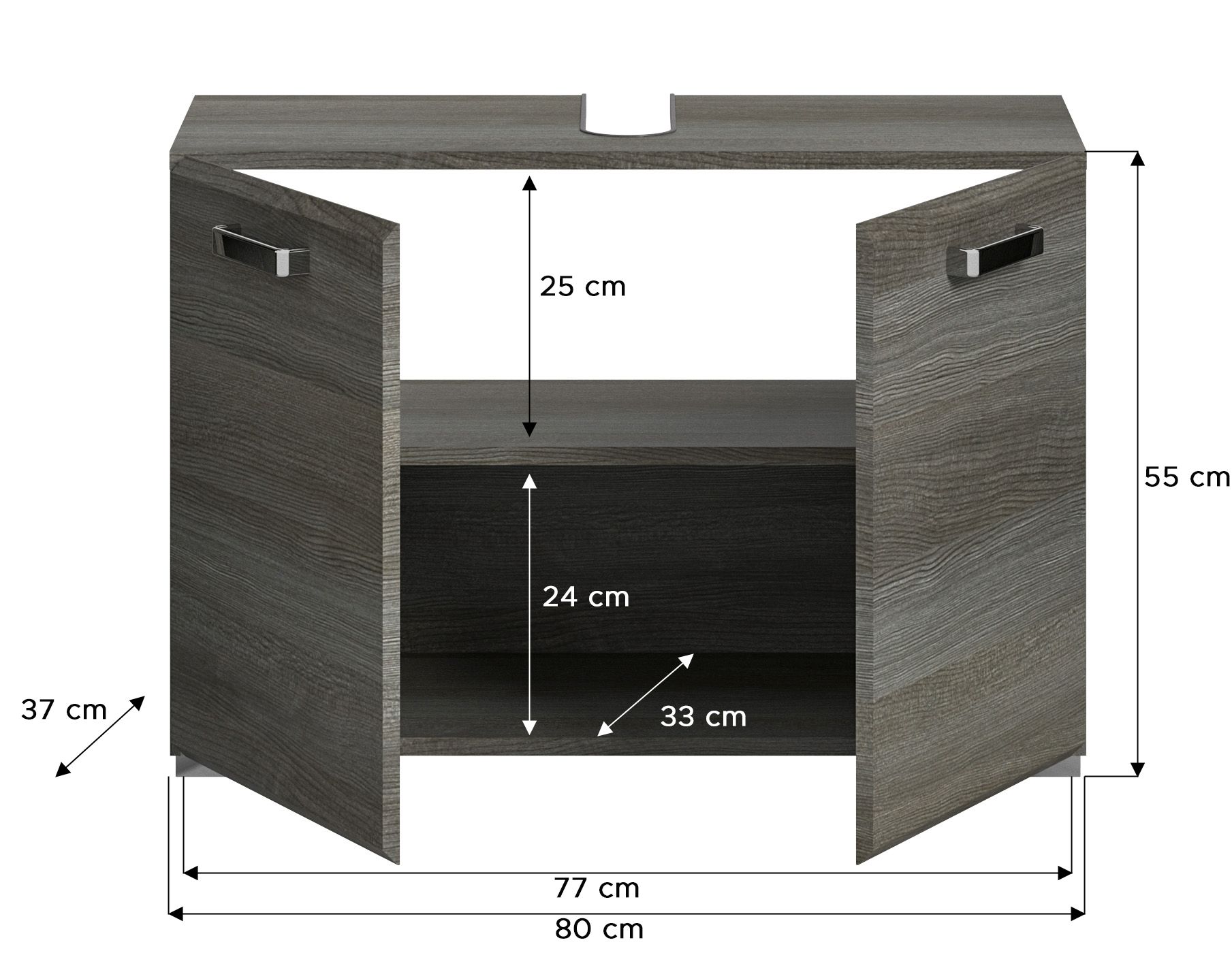 Verleihe deinem Badezimmer mit unserem standfesten Waschbeckenunterschrank in Rauchsilber Nachbildung eine moderne Note. Mit Maßen von 80x55x37 cm bietet er nicht nur Platz für deine Badutensilien, sondern sorgt auch für eine stylische Atmosphäre. Hol dir jetzt das Must-have für dein Bad!