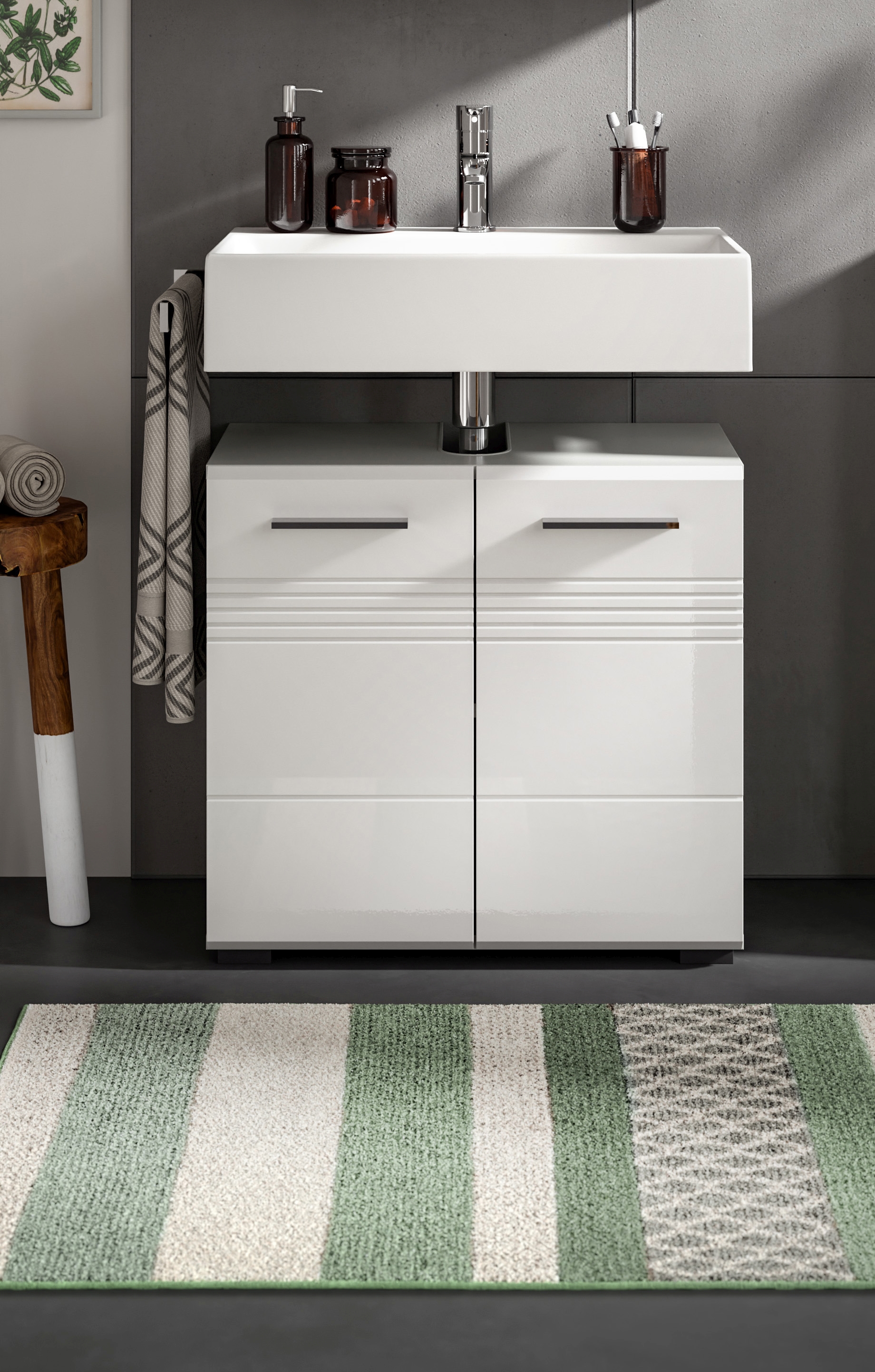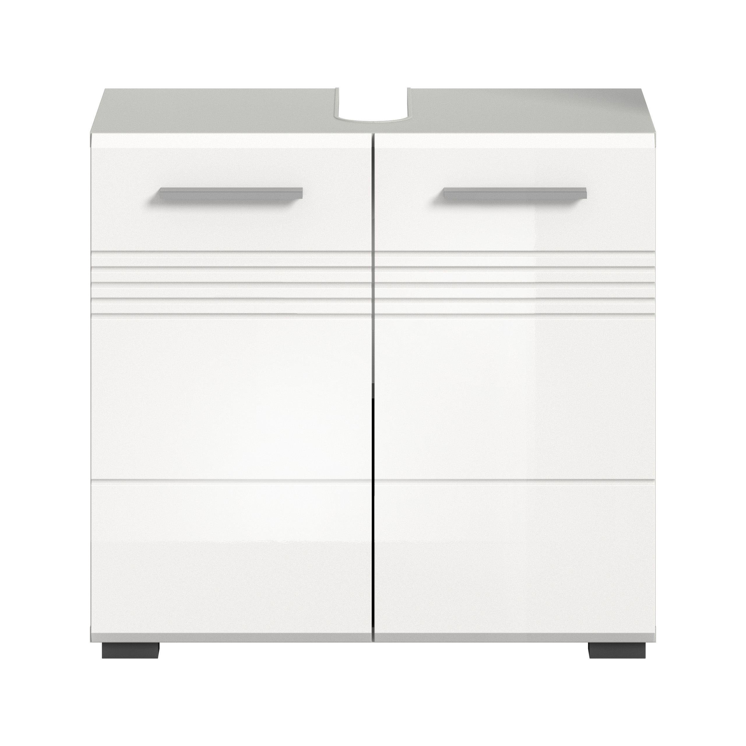 Entdecken Sie unseren hochwertigen Waschbeckenunterschrank in edlem Hellgrau Nachbildung und weißem Hochglanz, tiefgezogen für ein glänzendes Finish. Mit den Maßen (B/H/T: 60x56x32 cm) bietet er nicht nur praktischen Stauraum, sondern verleiht Ihrem Badezimmer auch eine moderne Note. Dieser Schrank ist die perfekte Wahl, um Funktionalität und Stil in Ihrem Bad zu vereinen.