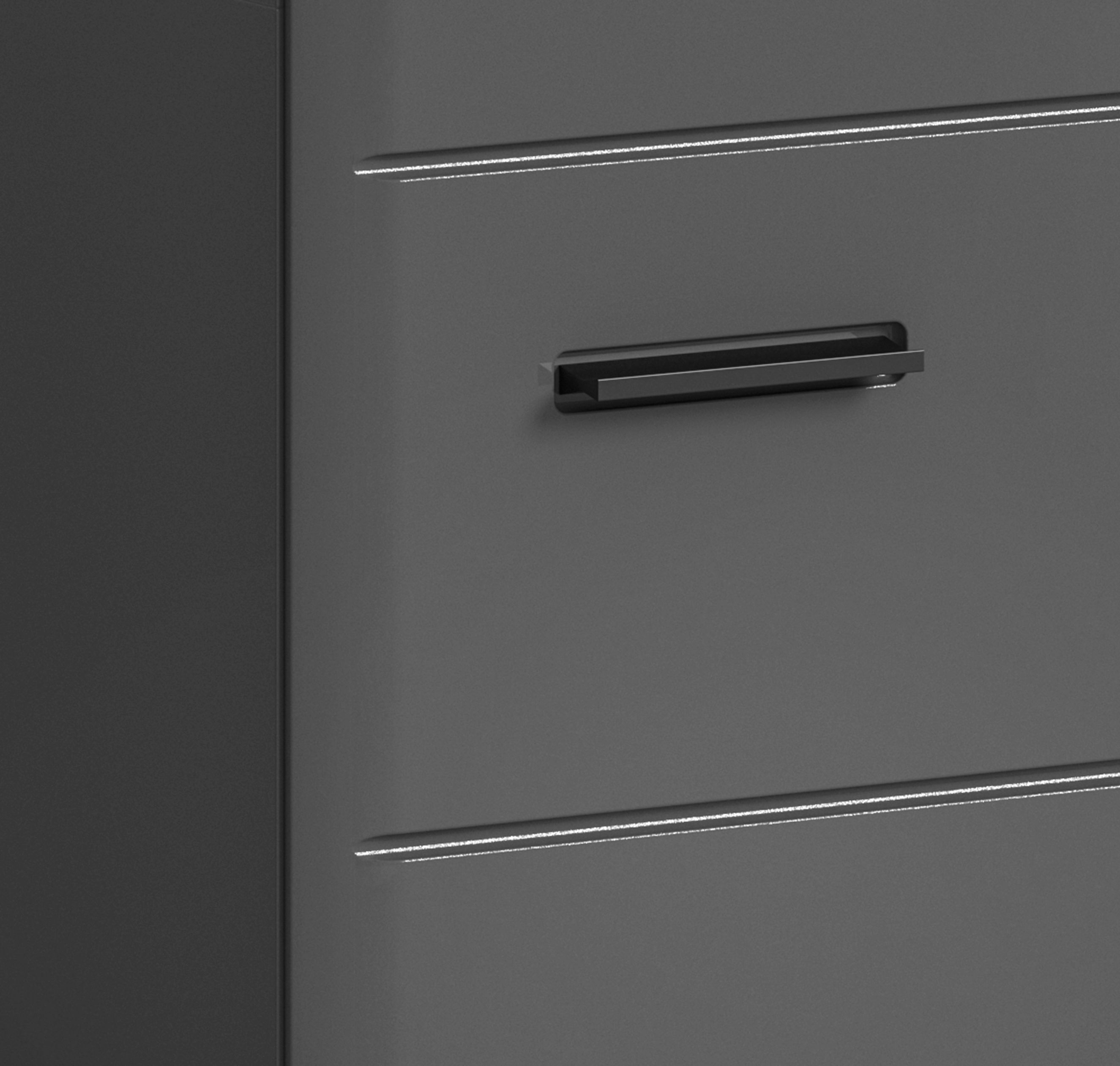 Front: Grau Hochglanz MDF (Mitteldichte Holzfaserplatte) Tiefzieh