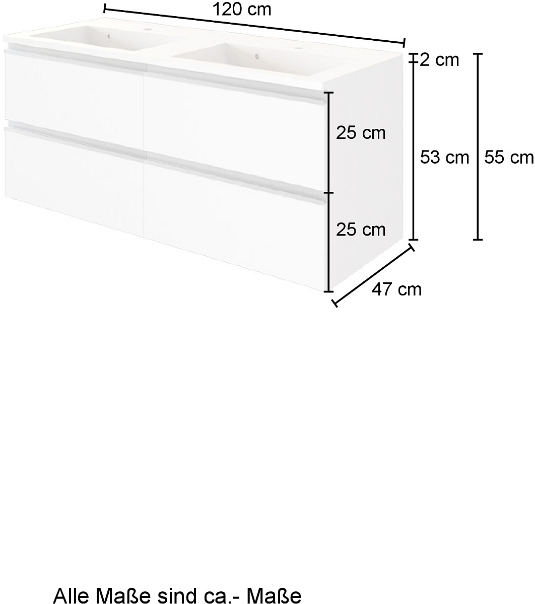| Waschbeckenunterschrank mit Mineralgussbecken | 120 | 54 | 47 |