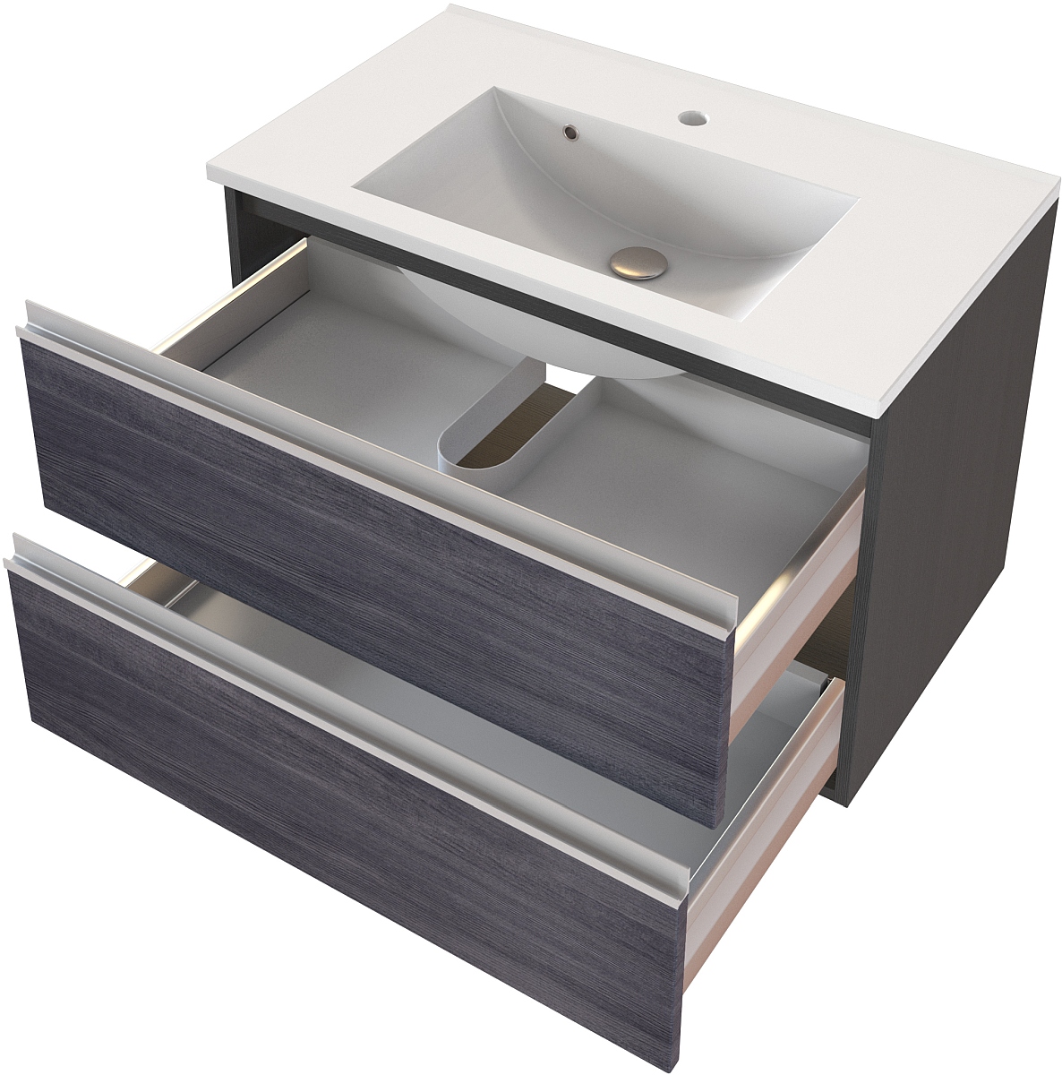 1 Waschbeckenunterschrank mit 2 Metallauszügen mit Soft-Close-Funktion