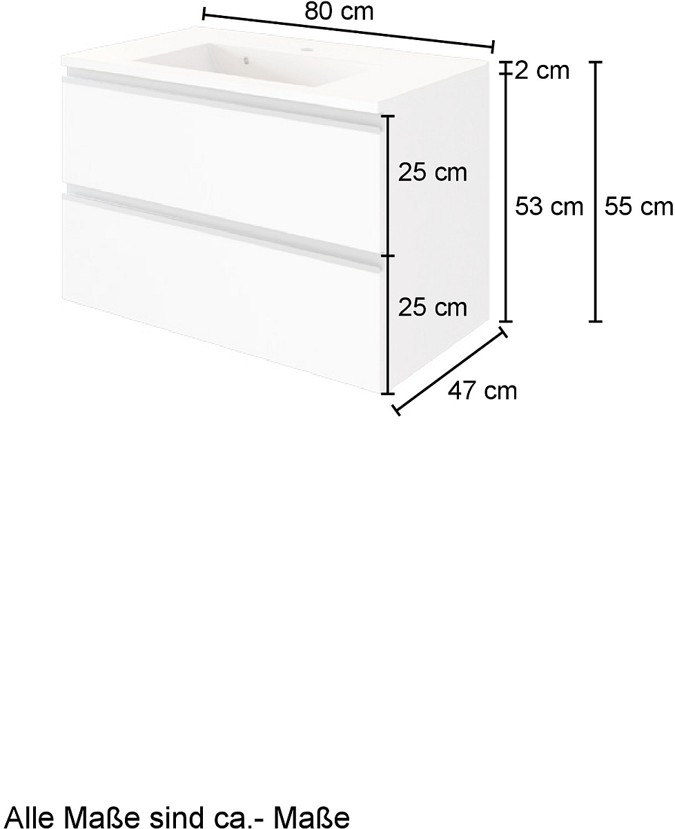 | Waschbeckenunterschrank mit Mineralgussbecken | 80 | 54 | 35 |
