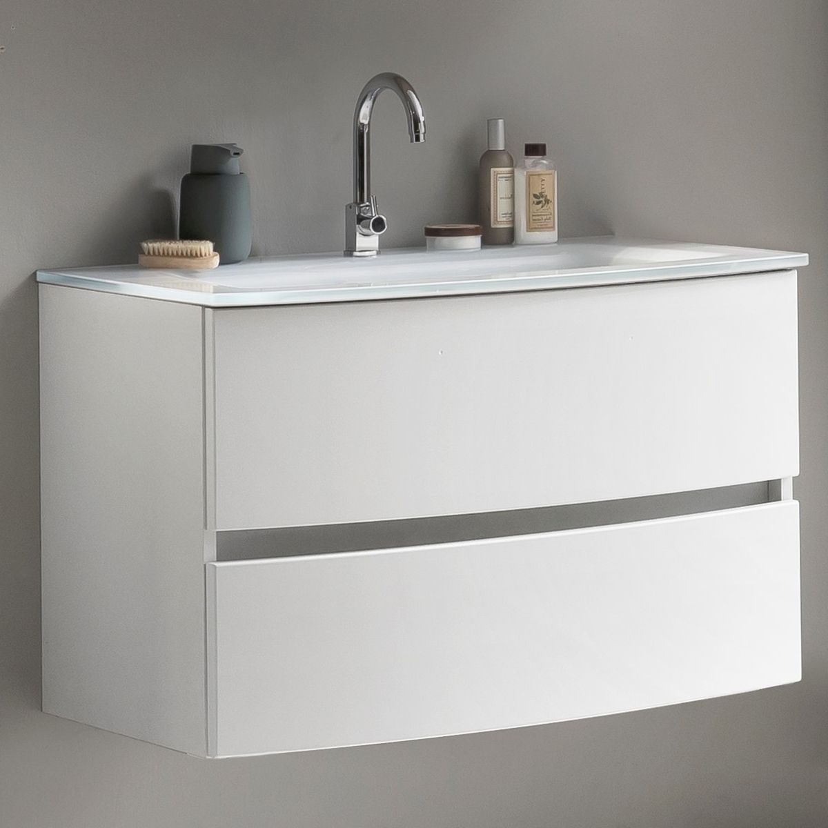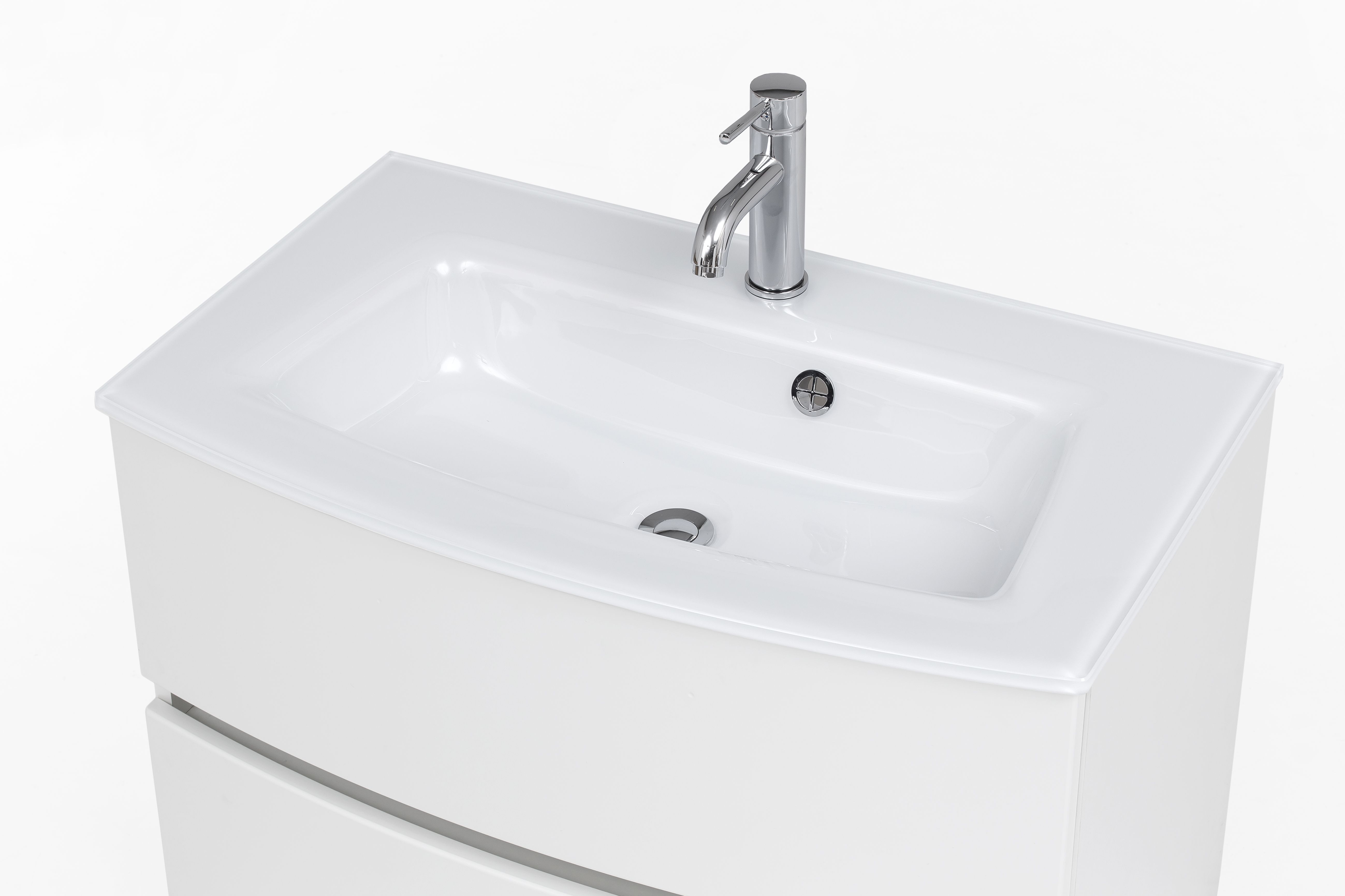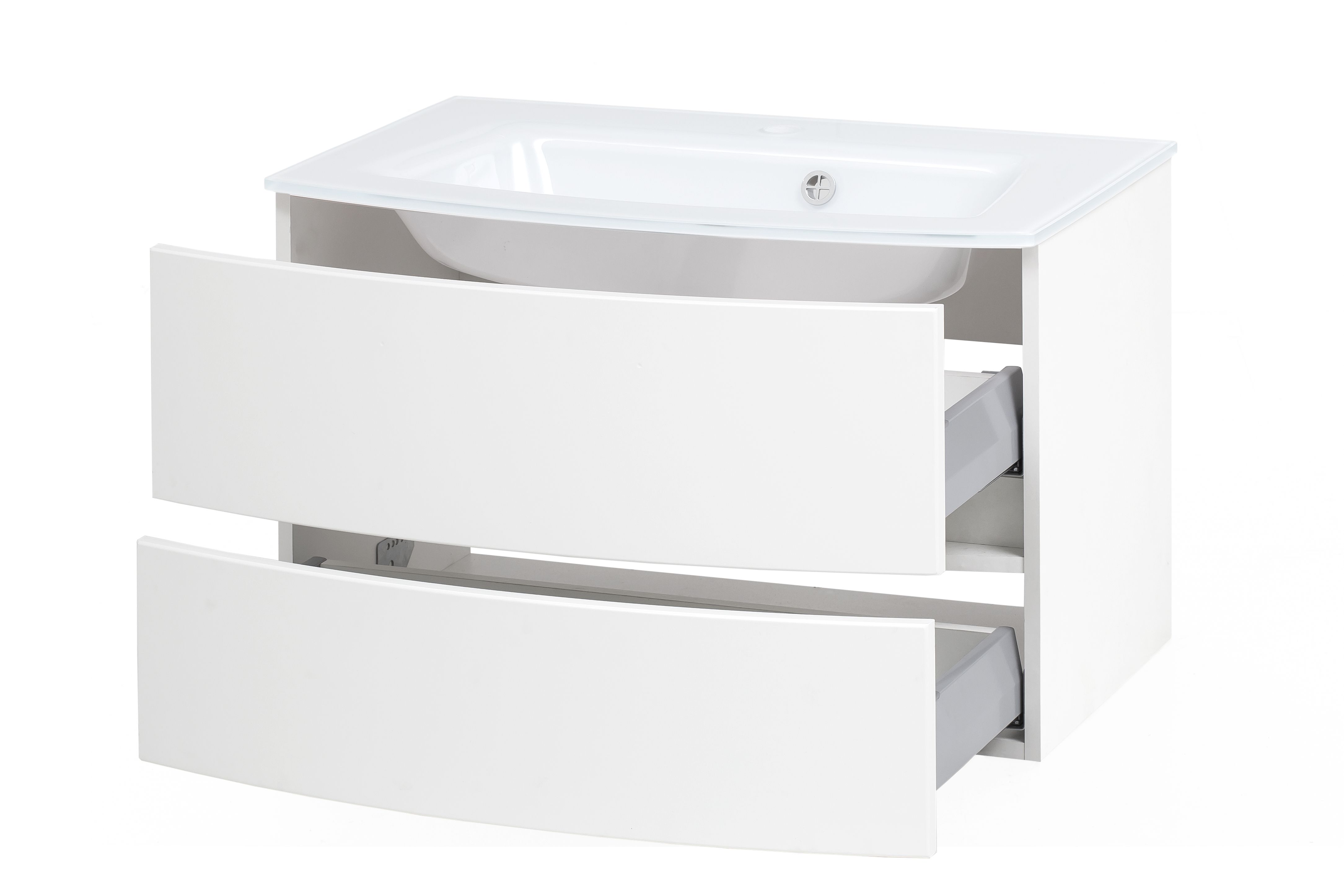 1 Waschbeckenunterschrank mit 2 Metall-Vollauszügen mit Softclose-Funktion, inklusiv gebogenen Fronten