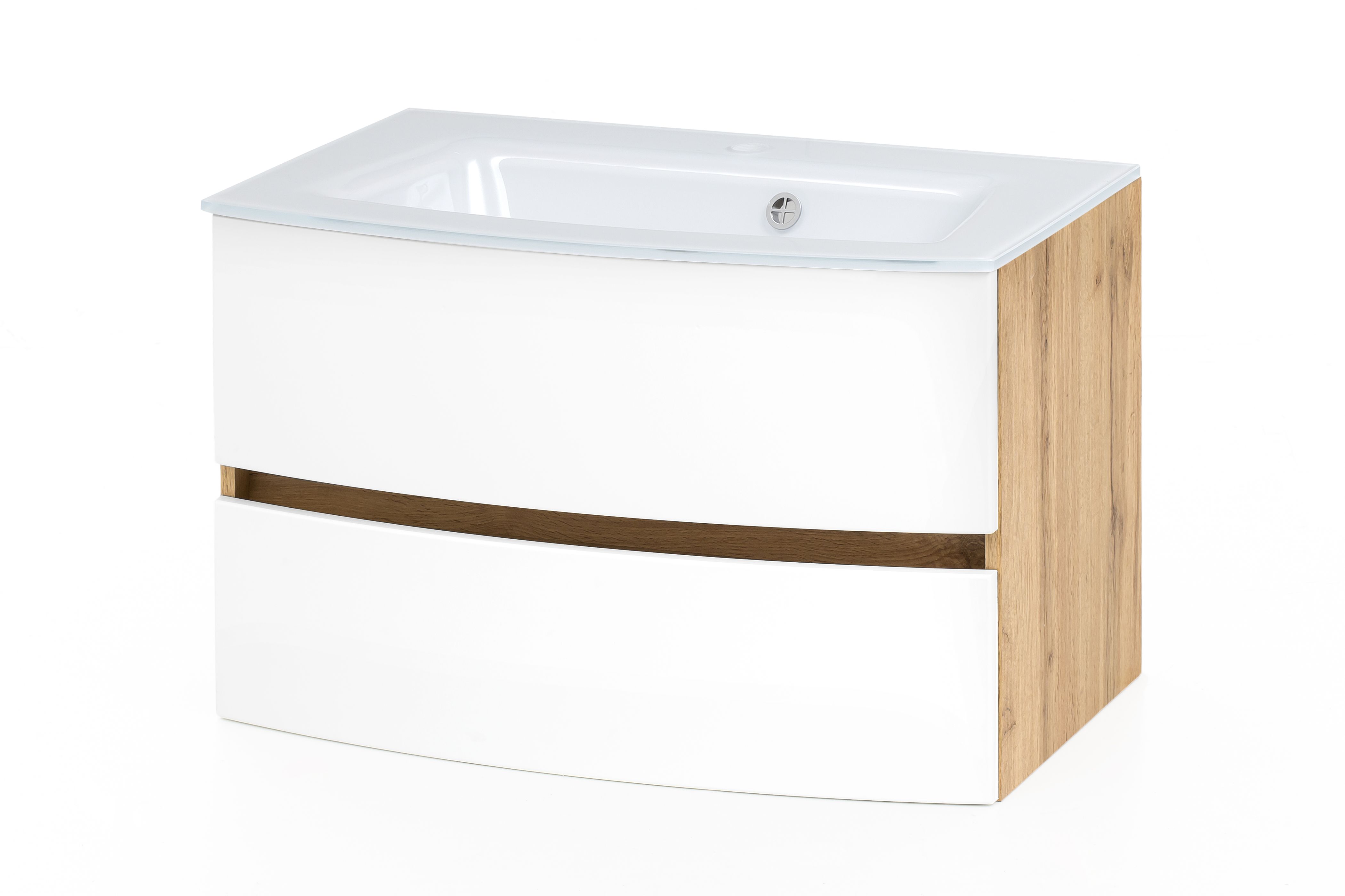 1 Waschbeckenunterschrank mit 2 Metall-Vollauszügen mit Softclose-Funktion, inklusiv gebogenen Fronten
