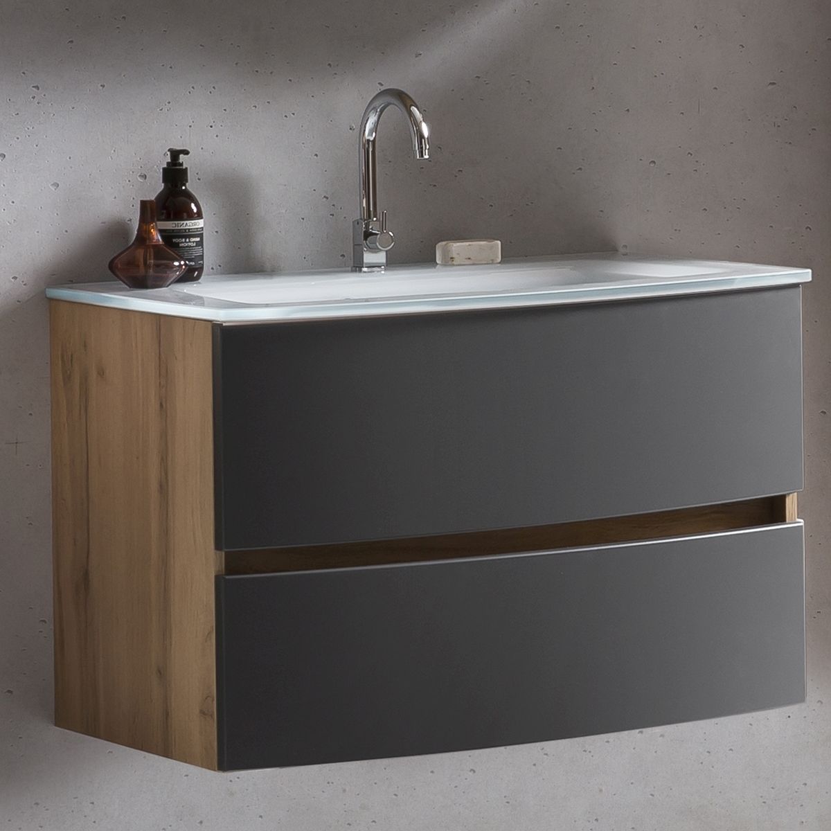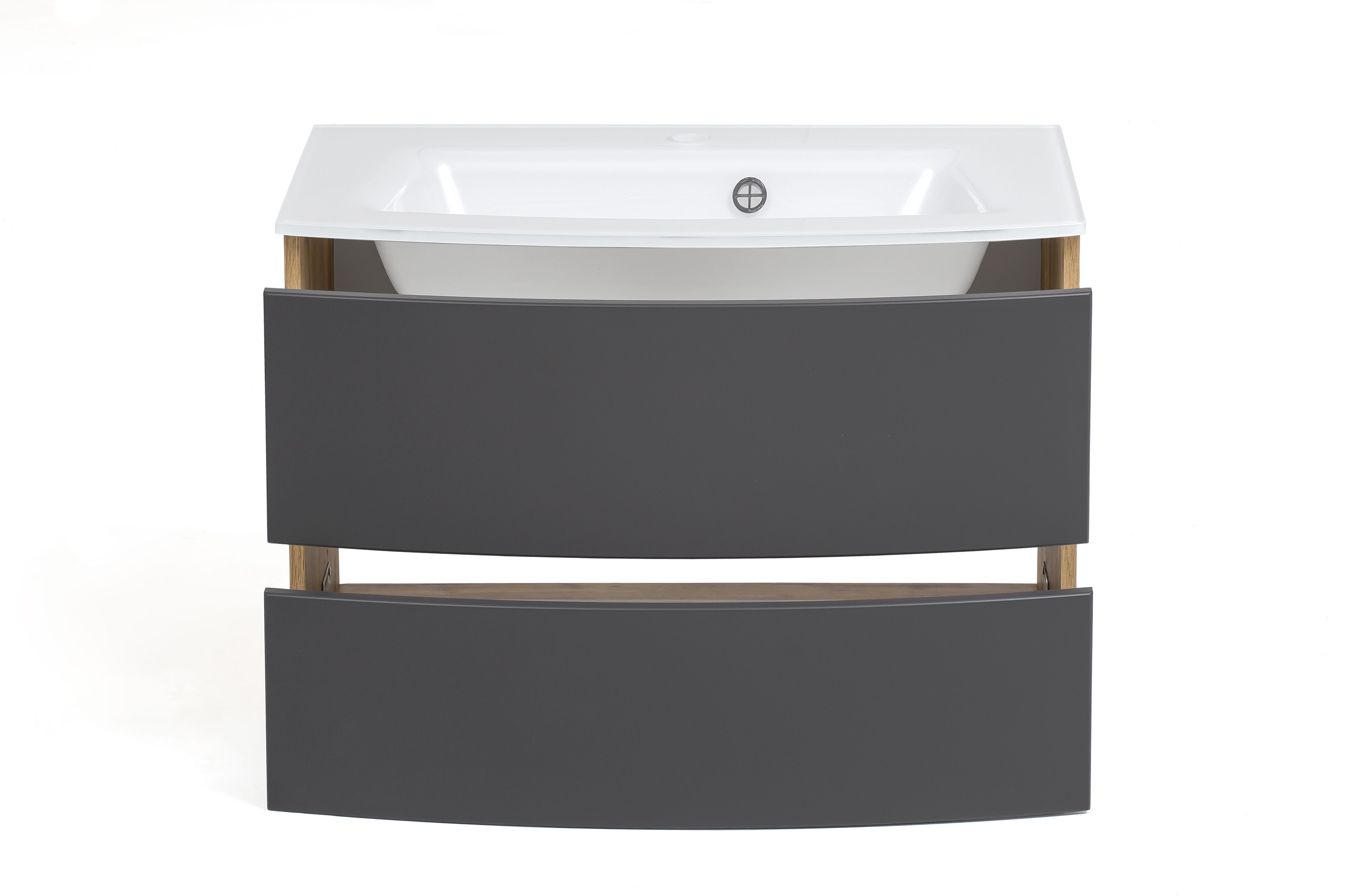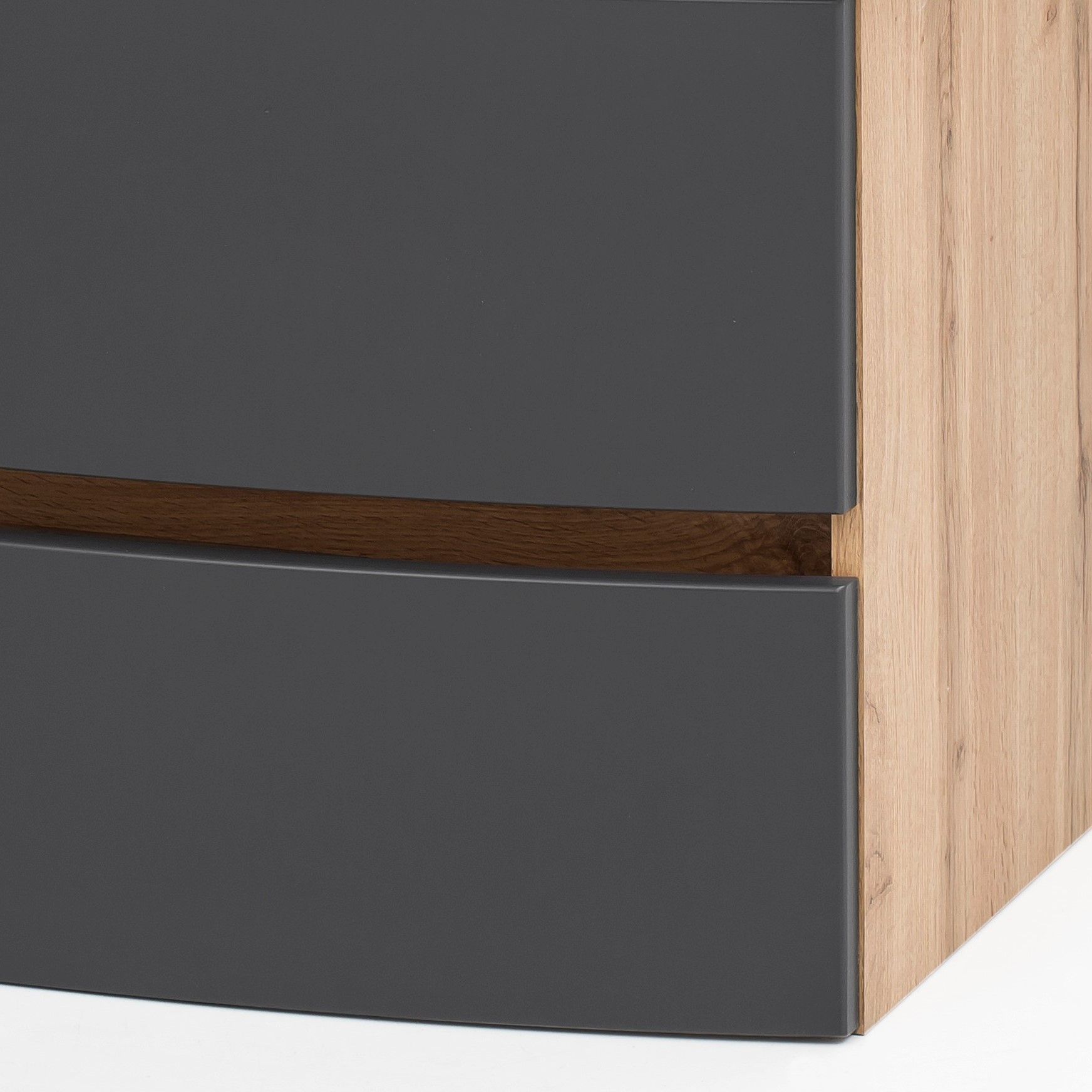 1 Waschbeckenunterschrank mit 2 Metall-Vollauszügen mit Softclose-Funktion, inklusiv gebogenen Fronten