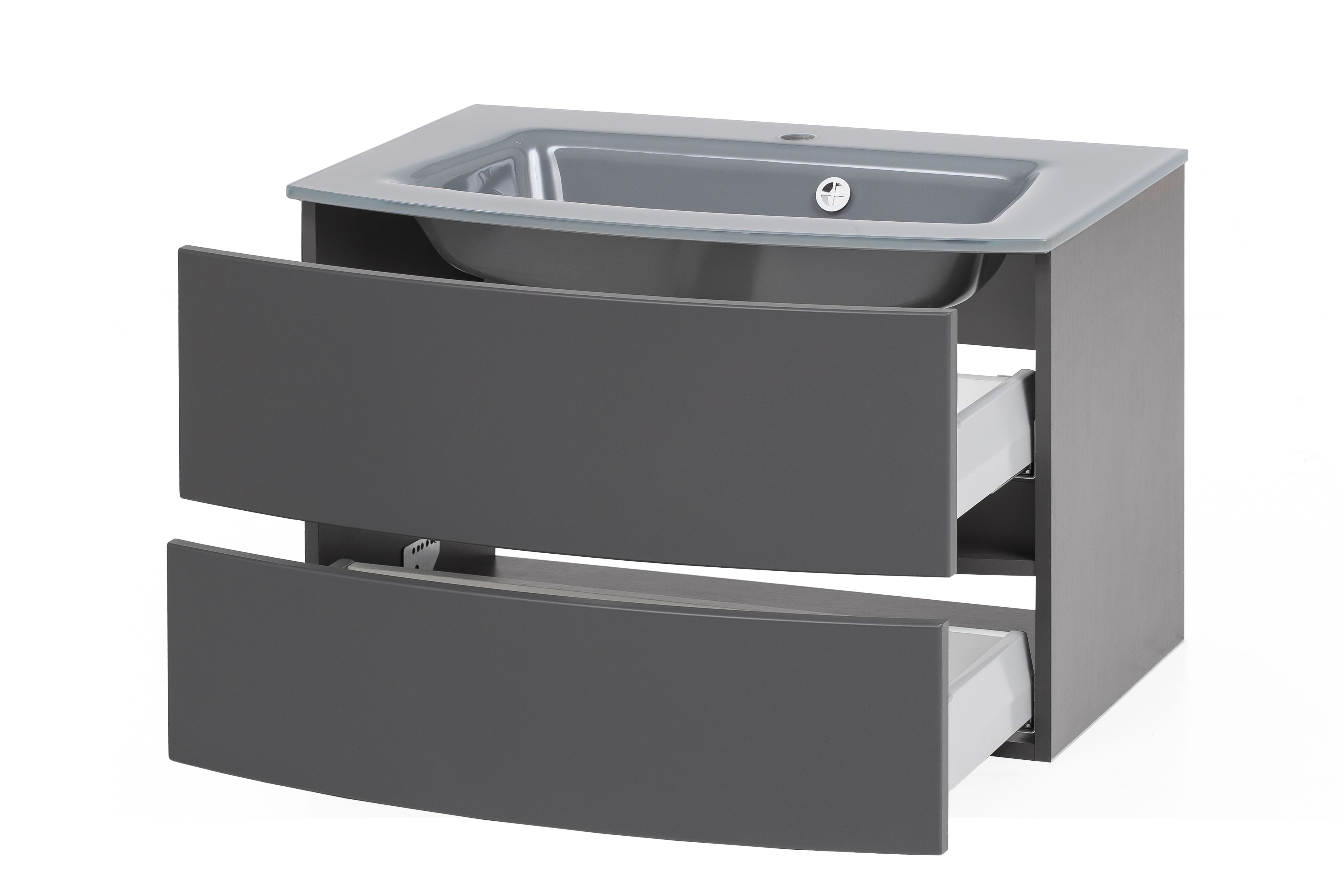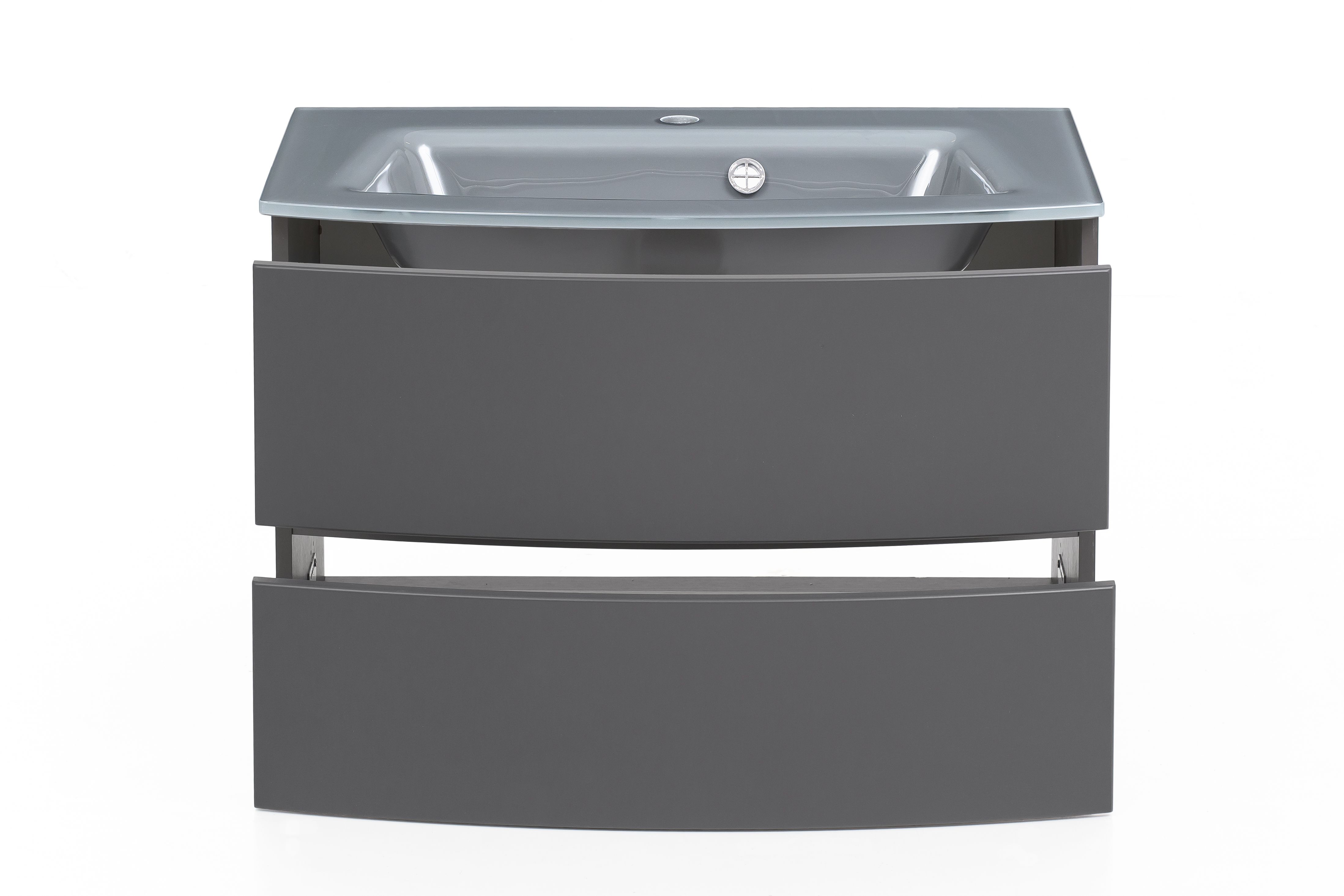 1 Waschbeckenunterschrank mit 2 Metall-Vollauszügen mit Softclose-Funktion, inklusiv gebogenen Fronten