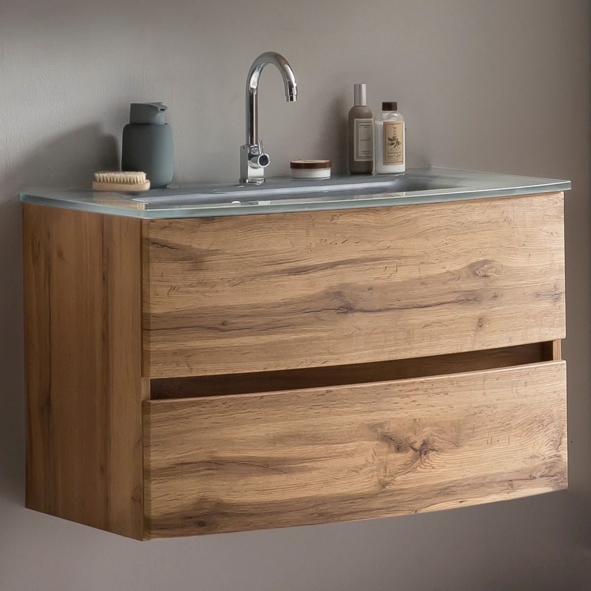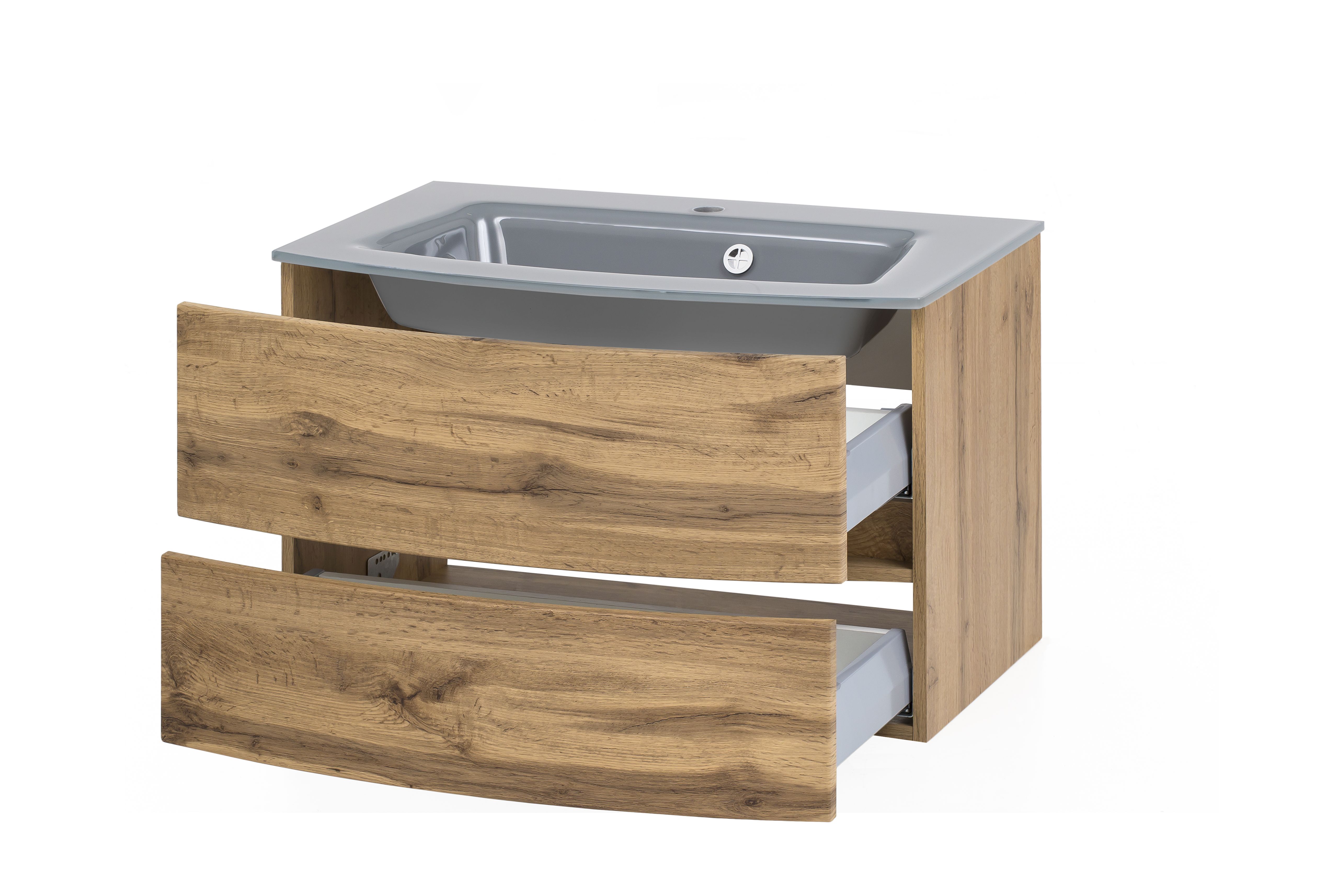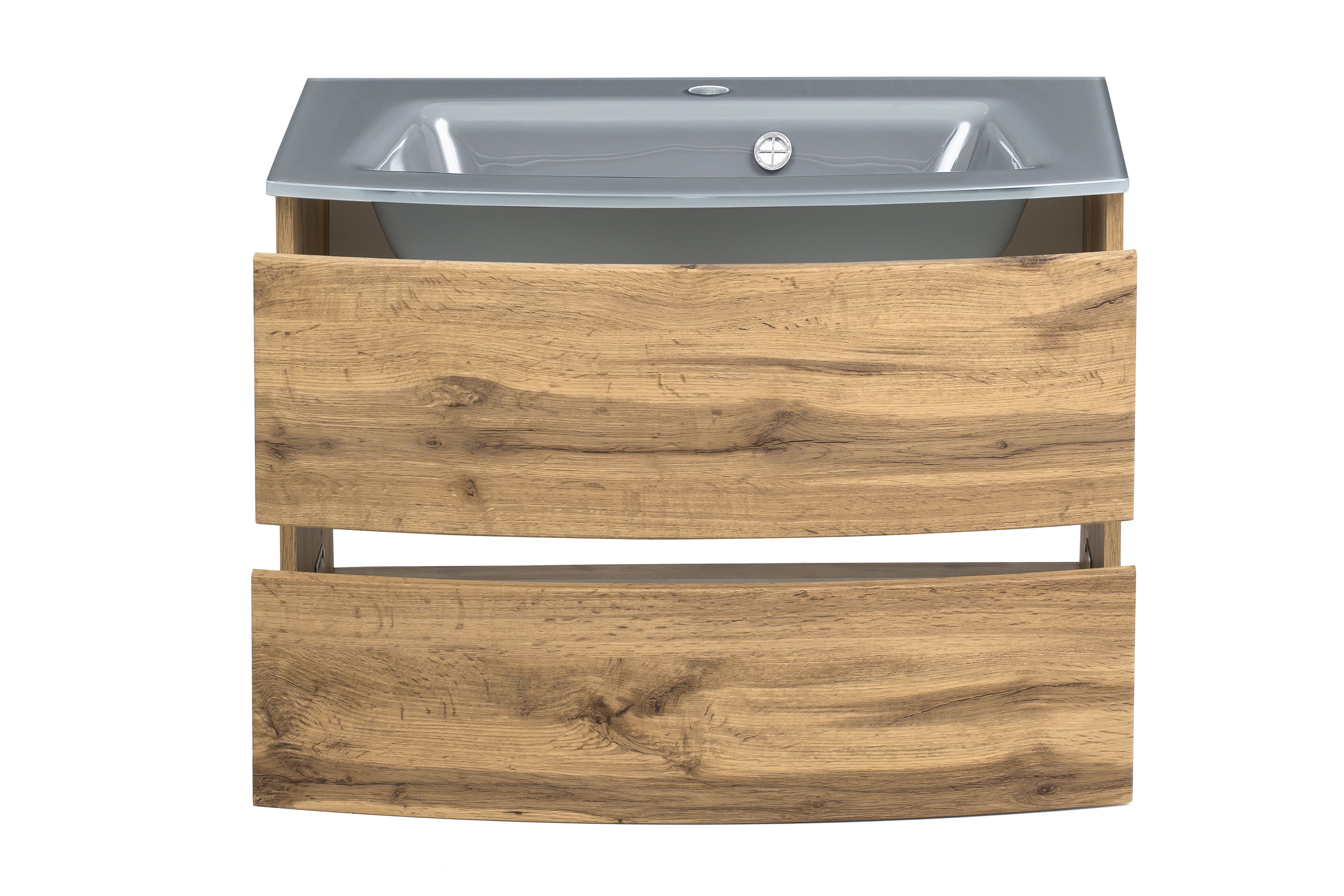 1 Waschbeckenunterschrank mit 2 Metall-Vollauszügen mit Softclose-Funktion, inklusiv gebogenen Fronten