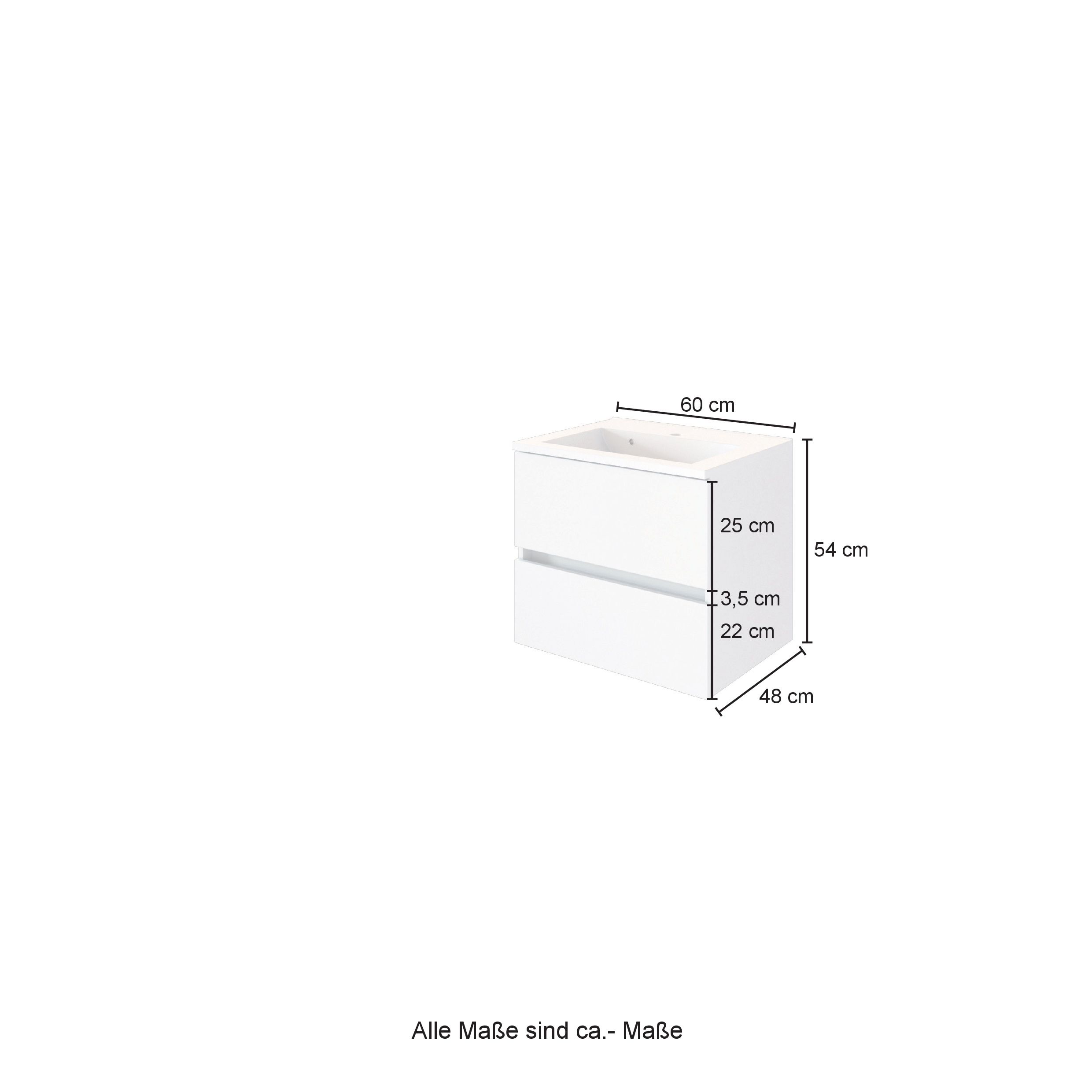 | Waschbeckenunterschrank mit Waschbecken | 60 | 56 | 47 |