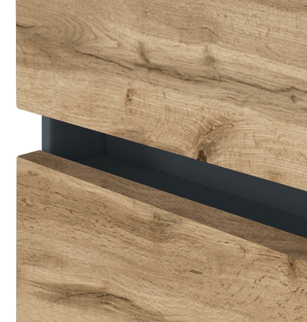 Front: MDF (Mitteldichte Holzfaserplatte) in Wotaneiche Holznachbildung