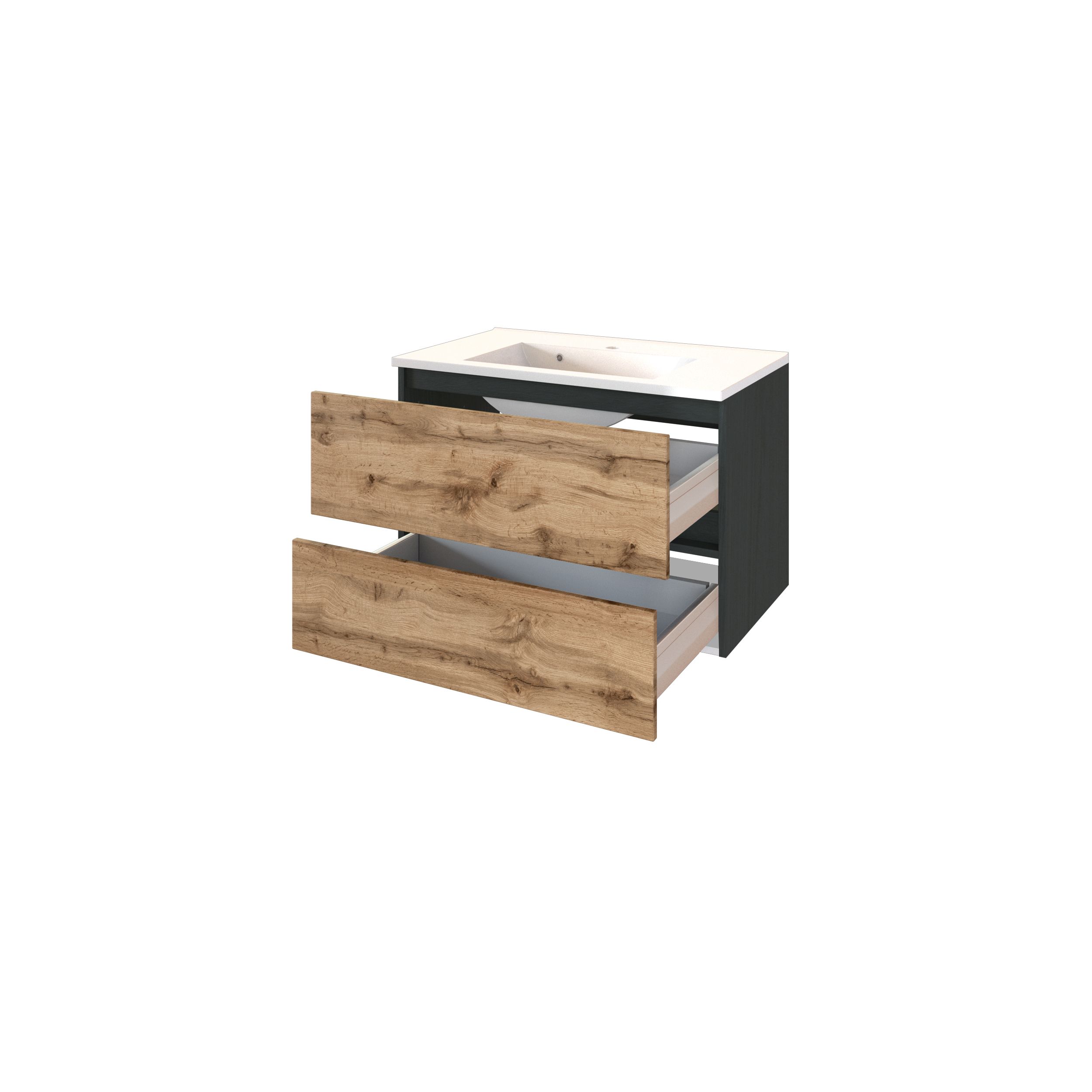 1 Waschbeckenunterschrank mit 2 Metallauszügen mit Softclose-Funktion und Reling, grifflos