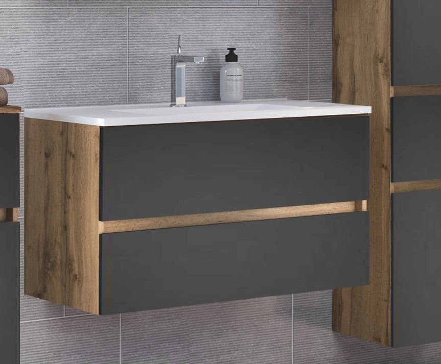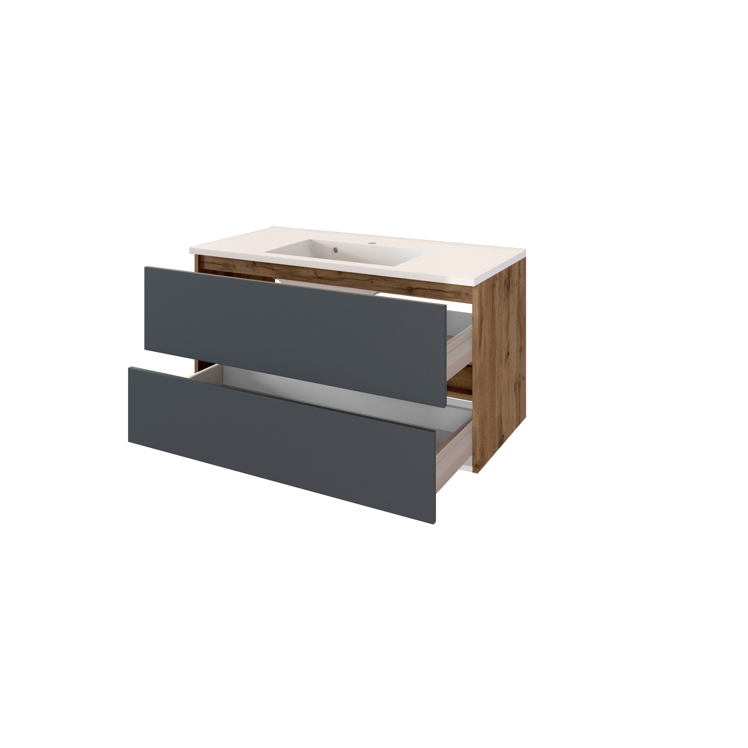 1 Waschbeckenunterschrank mit 2 Metallauszügen mit Softclose-Funktion und Reling, grifflos