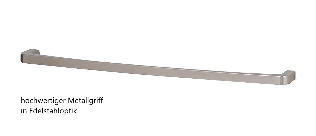 1 Waschbeckenunterschrank mit 2 Schubkästen mit Softclose-Funktion (Vollauszüge), unterer Auszug mit Reling inklusive gebogenen Fronten
