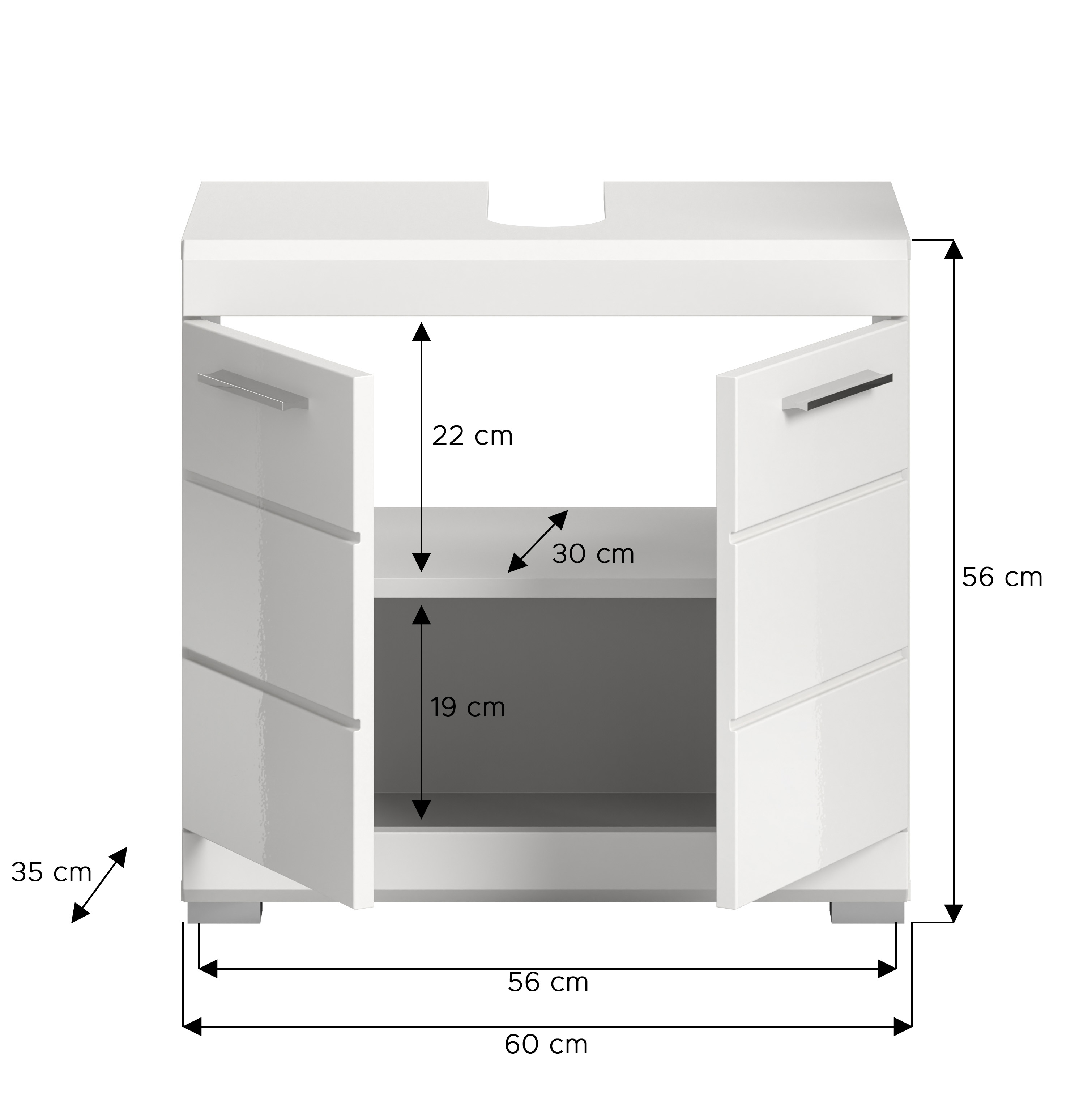 - Design/Stil: Schlichter Waschbeckenunterschrank in weiß Nachbildung und weißem Hochglanz tiefzieh, der sich nahtlos in verschiedene Badezimmer- und Hauswirtschaftsräume einfügt und ein modernes und ordentliches Erscheinungsbild bietet.
